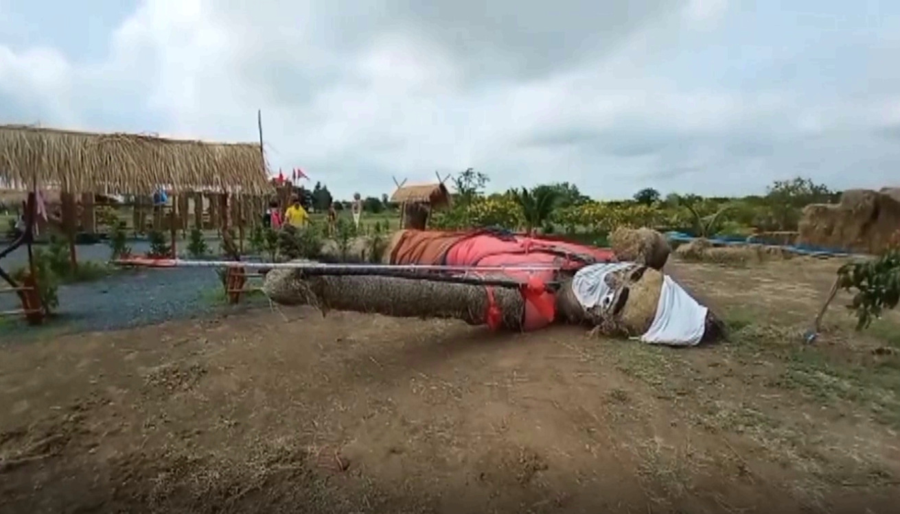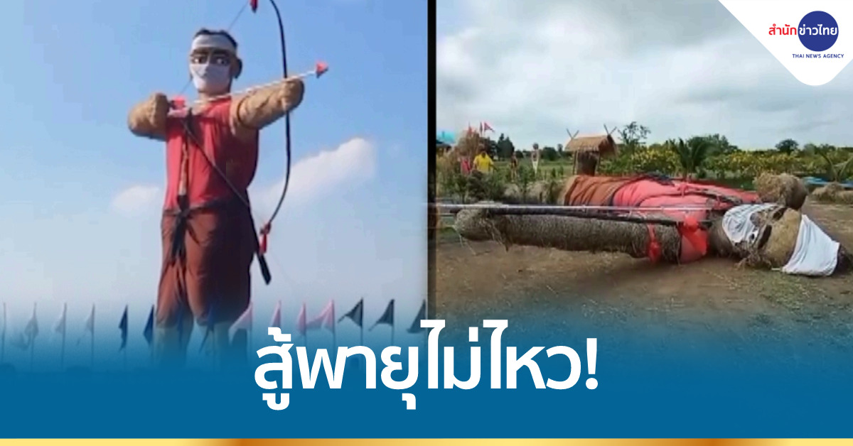 อ่างทอง 21 มี.ค.- ต้านไม่อยู่! หุ่นฟางนายพรานยักษ์สูงกว่า 9 เมตร ถูกลมพายุซัดจนโค่นลงมาทั้งตัว ทั้งที่เพิ่งจะทำพิธีบวงสรวงไปเมื่อวาน ขณะที่กรมอุตุฯ เตือนจะมีฝนเพิ่มขึ้น กับมีฝนตกหนักบางแห่งจากอิทธิพลพายุดีเปรสชันบริเวณอ่าวเบงกอล คาดว่าจะเข้าเมียนมาพรุ่งนี้ (21 มี.ค.)