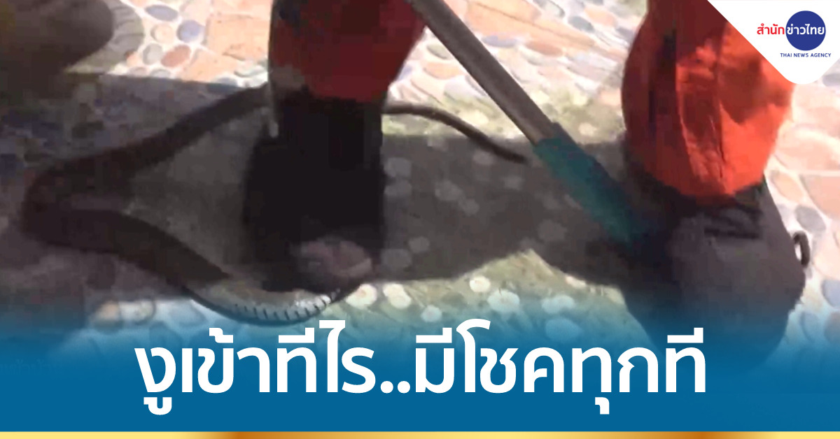 นางทองสุขที่นั่งดูอยู่ เล่าว่า ขณะหลานสาวนำผ้ามาตากหน้าบ้าน เห็นงูเลื้อยเข้าไปซุกใต้กระถางต้นไม้ และบอกให้ระวังงู ตนจึงมานั่งเฝ้าแบบไม่ให้คาดสายตา ขณะที่หลานโทรศัพท์แจ้งเจ้าหน้าที่ ยอมรับว่าทั้งดีใจทั้งกลัวจนตัวสั่น เพราะเป็นคนกลัวงู และเชื่อว่าเป็นงูเจ้าที่มาให้โชคเหมือนทุกครั้งที่ผ่านมา แต่ตัวไม่ใหญ่ยาวเหมือนครั้งนี้ ตั้งแต่มาอยู่ที่บ้านหลังนี้เกือบ 10 ปี หากมีงูเลื้อยเข้าบ้าน จะมีโชคถูกหวยทุกครั้ง และหวังว่าครั้งนี้คงไม่พลาด จะหาซื้อลอตเตอรี่เลขที่บ้าน เผื่อเจ้าที่เจ้าทางจะให้โชคใหญ่ถูกรางวัลที่ 1 และหากถูกรางวัลที่ 1 จะฉลองเลี้ยงคนทั้งหมู่บ้าน และนำไปทำบุญด้วย.-สำนักข่าวไทย