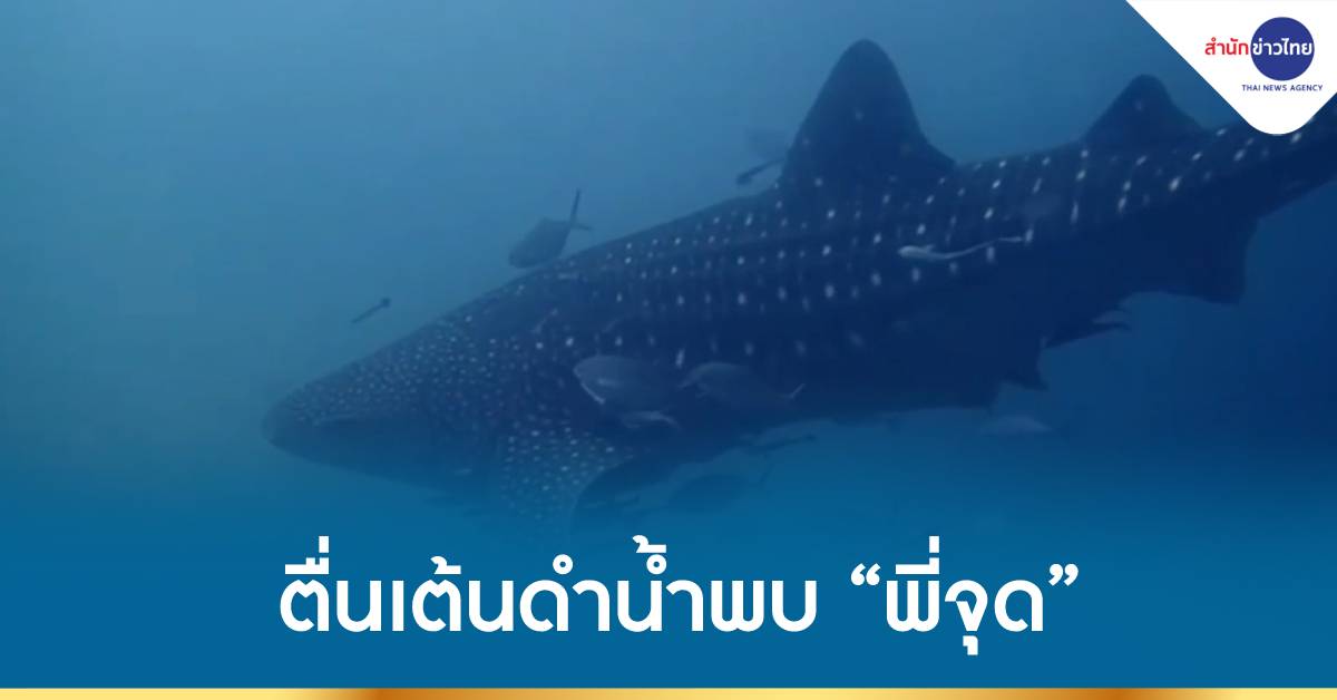 นักเรียนดำน้ำตื่นตาตื่นใจพบ “ พี่จุด” ฉลามวาฬขนาดใหญ่ บริเวณจุดดำน้ำหินใบ ตำบลเกาะเต่า อำเภอเกาะพะงัน จังหวัดสุราษฎร์ธานี ซึ่งเป็นหนึ่งในจุดดำน้ำลึกที่ดีที่สุดและยอดนิยมแห่งหนึ่งของเกาะเต่า สำหรับ “พี่จุด” เป็นฉวามวาฬขนาดใหญ่แห่งเกาะเต่า มีความยาวลำตัวกว่า 4 เมตร บริเวณลำตัวมีลายจุดจำนวนมากเป็นเอกลักษณ์ ว่ายน้ำหาอาหารโดยมีปลาช่อนทะเลและปลาขนาดเล็กว่ายน้ำตามเป็นฝูง.-สำนักข่าวไทย
