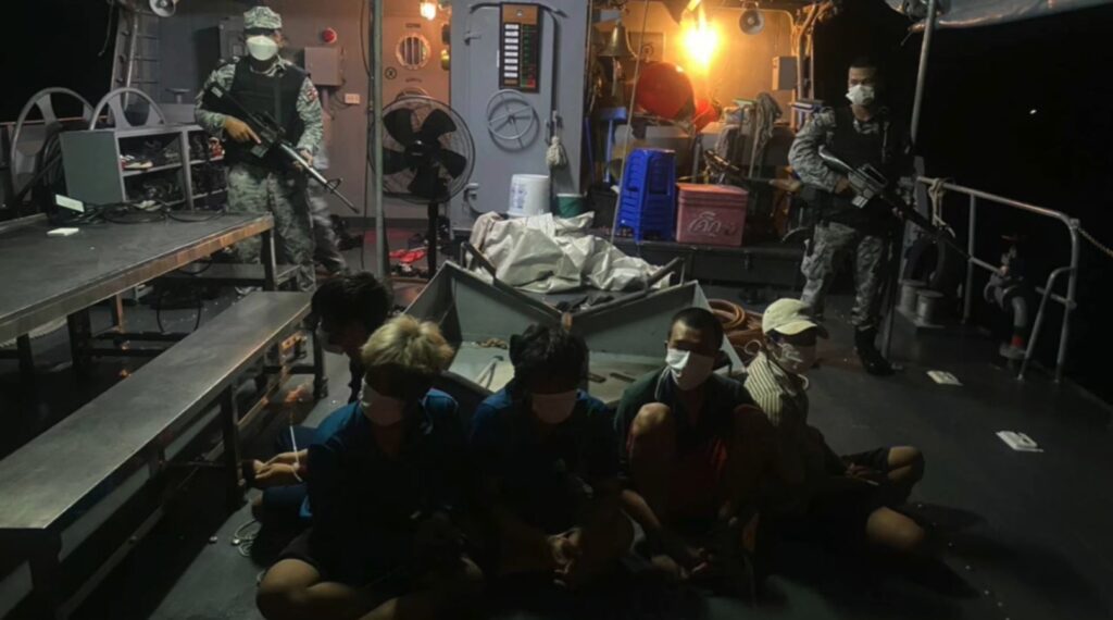 จากนั้นเรือ ต.113 ได้เร่งเครื่องตามเพื่อจับกุม พร้อมสั่งให้หยุดเร่งเครื่องหนี เมื่อเห็นว่าไม่สามารถหนีพ้น เรือประมงเวียดนามลำดังกล่าวจึงหยุด และยอมให้จับกุม โดยเจ้าหน้าที่สามารถควบคุมตัวลูกเรือได้ทั้งหมดจำนวน 5 คน เจ้าหน้าที่ทหารเรือได้ทำการตรวจหาเชื้อโควิด-19 ลูกเรือเวียดนามทุกคนด้วยชุดตรวจ ATK ซึ่งผู้ต้องหาทั้งหมดมีผลเป็นลบ จากนั้นเรือ ต.113ได้ควบคุมเรือประมงของกลางและลูกเรือทั้งหมดกลับเข้าฝั่ง ณ ท่าเทียบเรือสถานีเรือสมุย ฐานทัพเรือสงขลา ทัพเรือภาคที่ 2 เพื่อส่งตัวผู้ต้องหาทั้งหมดดำเนินคดีตามกฎหมายต่อไป.-สำนักข่าวไทย