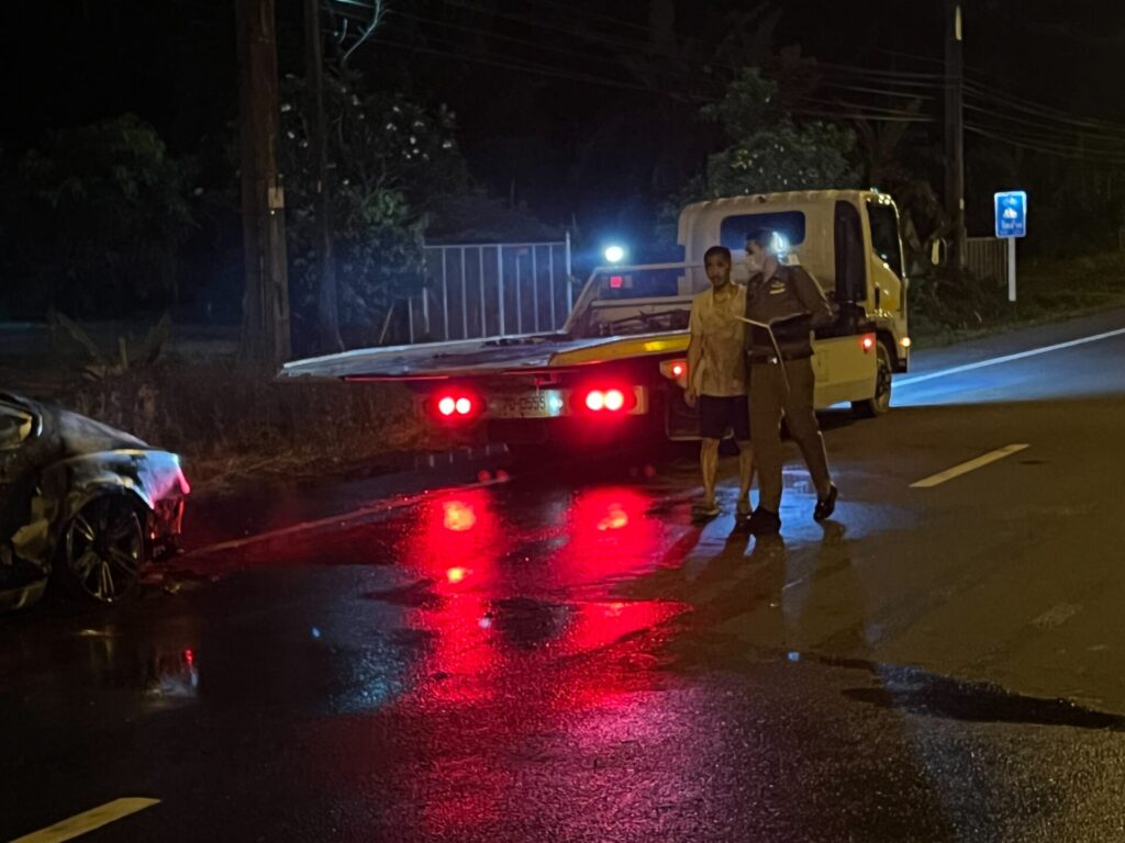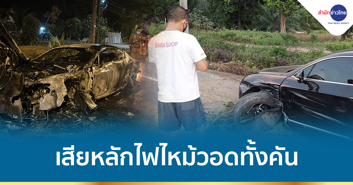 พังงา 24 มี.ค.- ไฮโซปลาวาฬ ซิ่งเก๋งหรูเสียหลักพลิกหลายตลบ ก่อนไฟไหม้รถวอดทั้งคัน ส่วนเจ้าตัวและเพื่อนปลอดภัยออกจากรถได้ทัน