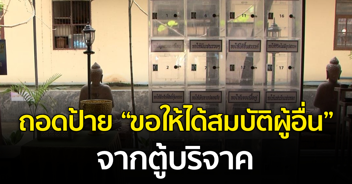 สมุทรสาคร 25 มี.ค. – ดราม่าไม่หยุด วัดท่าไม้ จ.สมุทรสาคร โซเชียลถามเหมาะสมหรือไม่ ติดป้ายคำอธิษฐาน “ขอให้ได้สมบัติผู้อื่น” บนตู้รับบริจาค ล่าสุดวัดถอดป้ายนี้ออกแล้ว ขณะที่ “ศรีสุวรรณ” จี้สำนักพุทธฯ ตรวจสอบ.-สำนักข่าวไทย