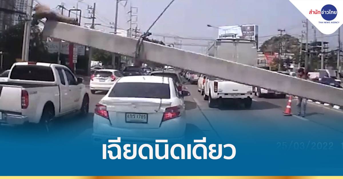 เชียงใหม่ 27 มี.ค. – หวิดไป! เสาเข็มหลุดโค่นขวางกลางถนน เฉียดหน้ารถไปนิดเดียว ขณะจอดติดไฟแดงแยกศาลเด็ก จ.เชียงใหม่
