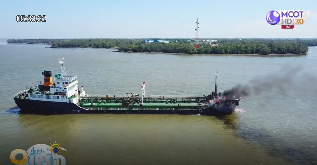 สมุทรปราการ 28 มี.ค. – เพลิงไหม้เรือบรรทุกน้ำมัน บริเวณปากอ่าวแม่น้ำเจ้าพระยา ใกล้กับกองเรือทุ่นระเบิด อ.พระสมุทรเจดีย์ จ.สมุทรปราการ มีผู้เสียชีวิต 1 ราย บาดเจ็บ 4 ราย