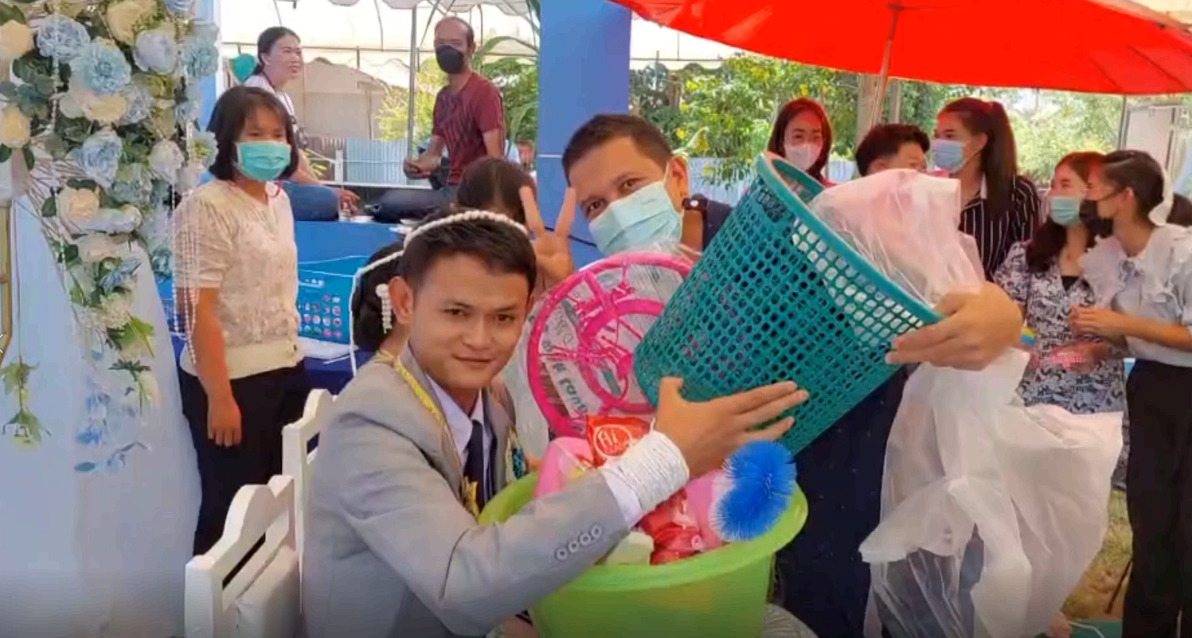 ผู้สื่อข่าวสอบถามเจ้าของคลิปคือ นายมนตรี บอกว่า ตนเองเป็นคนที่มอบของขวัญให้เจ้าบ่าว ซึ่งเป็นน้องที่ทำงานด้วยกันคือ น้องบิ๊ก(เจ้าบ่าว) และน้องแหม่ม(เจ้าสาว) หลังจากผูกแขนเจ้าบ่าว-เจ้าสาวเสร็จแล้ว ตนก็ได้มอบของขวัญให้กับฝ่ายเจ้าบ่าว ซึ่งแต่ละชิ้นล้วนแต่มีความจำเป็นกับเจ้าบ่าว และการใช้ชีวิตคู่
