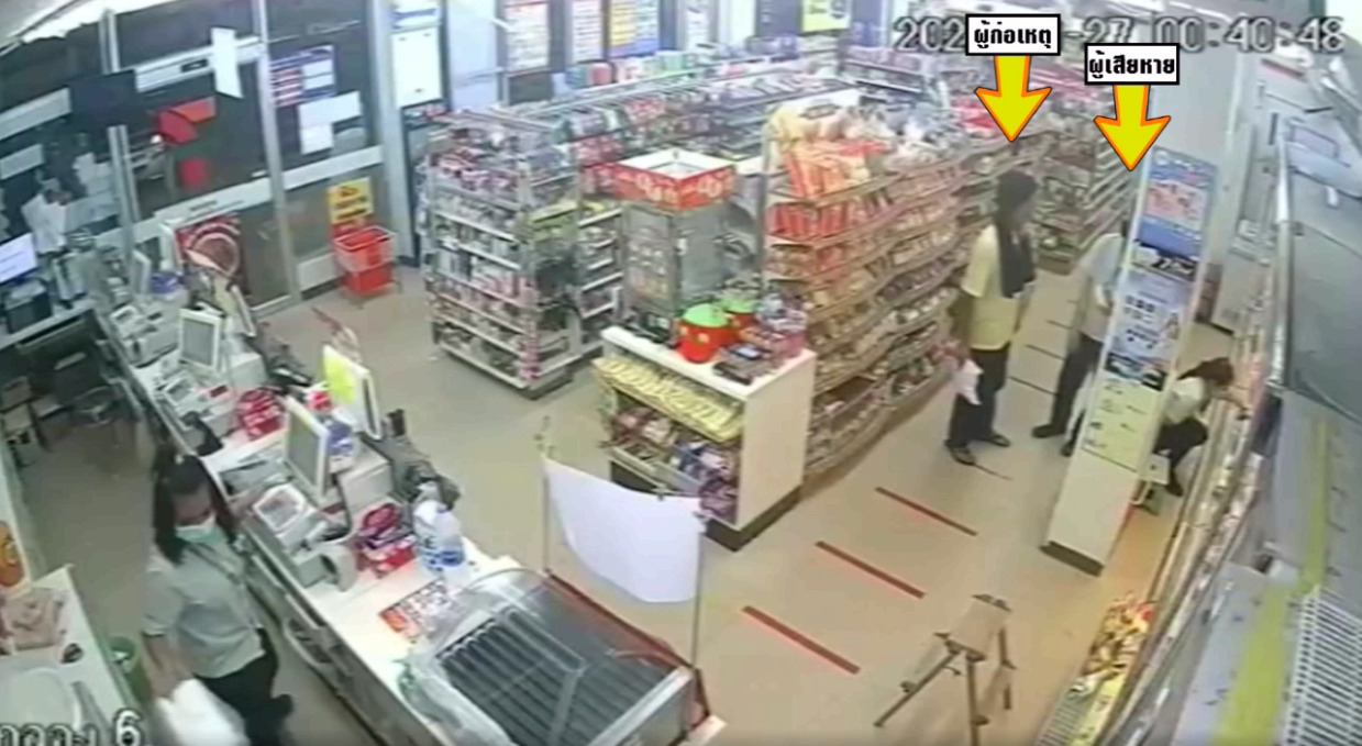 เหตุการณ์นี้เกิดขึ้นช่วง 00.40 น.ของวันที่ 27 มีนาคม ส่วนคนเจ็บคือ นายพัทธมน อายุ 19 ปี พนักงานร้านสะดวกซื้อ ตอนนี้ยังมีร่องรอยบาดแผลตามร่างกายเล่าว่า ช่วงที่อยู่ในร้านมีวัยรุ่นชายเดินเข้ามาในร้านด้วยท่าทางเมาสุรา และไม่ใส่แมสก์ จึงเตือนไปว่าให้สวมแมสก์ก่อนเข้าร้าน ทำให้ชายคนดังกล่าวไม่พอใจ พร้อมกับบอกว่า “มันเรื่องของกู มึงจะทำไม มีปัญหาไหม”