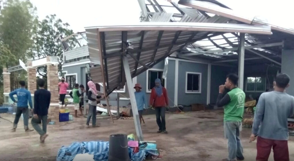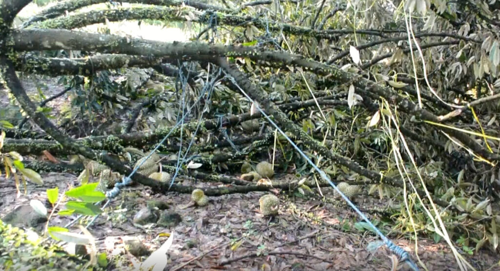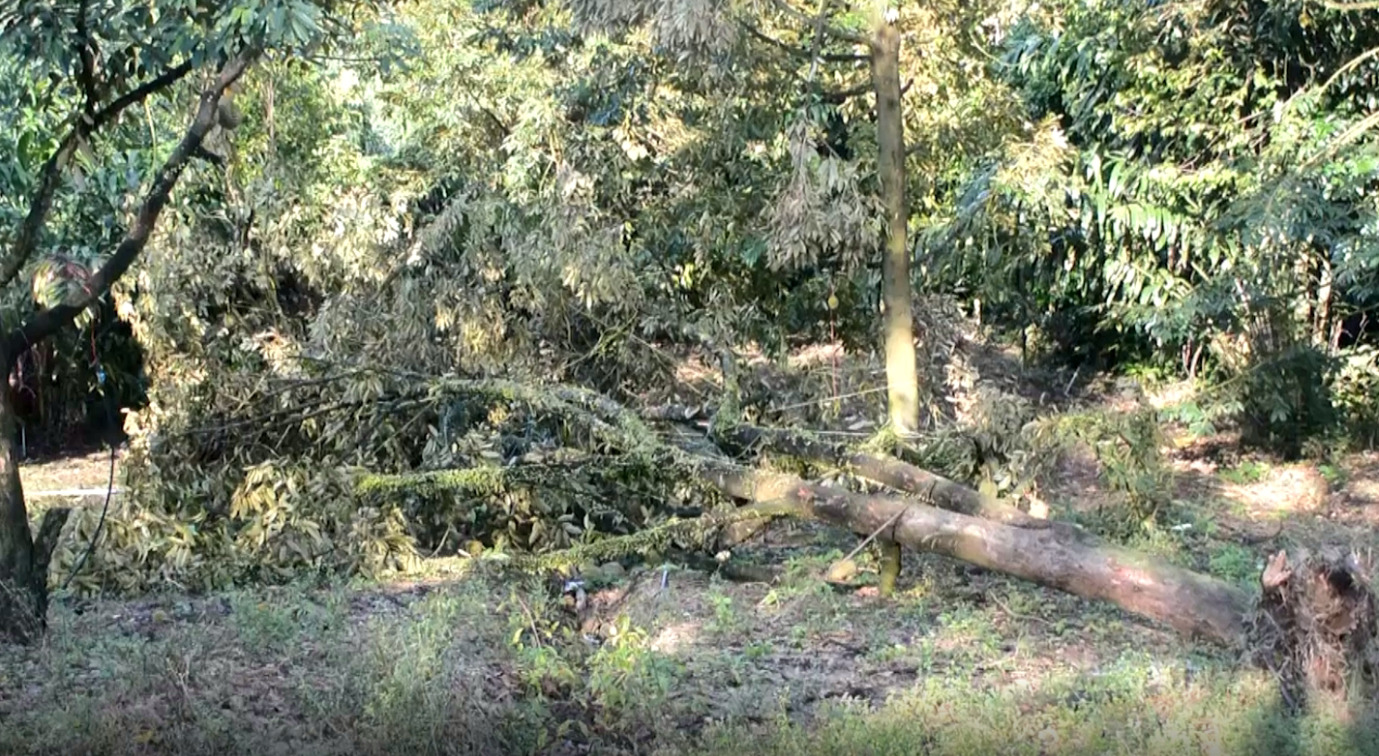 เหตุเกิดช่วง 18.00 น. เมื่อวานนี้ (29 มี.ค.) พายุพัดกระหน่ำ 2 รอบ รอบละประมาณ 5 นาที รอบแรกไม่มีอะไร รอบสองหนัก สวนทุเรียนเสียหายหนักมาก