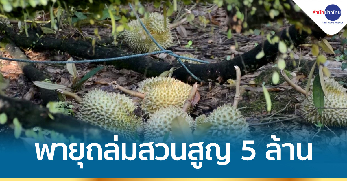 ผู้สื่อข่าวลงพื้นที่สำรวจสวนของนางปรานอม อายุ 54 ปี ชาวตำบลปัถวี อำเภอ มะขาม จังหวัดจันทบุรี พบต้นทุเรียนหมอนทอง อายุ 30 ปี กว่า 50 ต้น ถูกแรงลมพัดหักโค่นล้ม และมีผลทุเรียนที่จะสามารถเก็บเกี่ยวได้ประมาณ 20 วัน ถูกแรงลมพัดร่วงกล่นเสียหาย กระจายอยู่ทั่วสวน บางส่วนที่เก็บมารวบรวมไว้ได้ในโรงเรียนมีประมาณกว่า 15 ตัน บางส่วนยังเก็บไม่หมด คาดว่าจะมีประมาณ กว่า 5 ตัน รวมความเสียหายแล้วน่าจะอยู่ไม่ต่ำกว่า 20 ตัน หากคิดเป็นมูลค่าตัวเลขราคาขายอีก 20 วันข้างหน้าน่าจะประมาณ 3 ล้านบาท แต่หากคิดเป็นราคาขายในตลาดช่วงนี้ อยู่ที่กิโลกรัมละประมาณ 200 บาท จะคิดเป็นมูลค่ากว่า 5 ล้านบาทนับเป็นความเสียหายมากที่สุดตั้งแต่ทำสวนทุเรียนมา