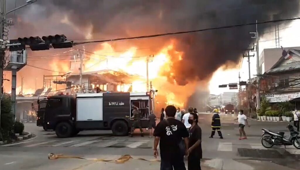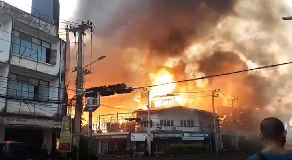 ปราจีนบุรี 29 มี.ค. – เพลิงไหม้อาคารไม้เก่าแก่กลางสี่แยกเมืองปราจีนบุรี เผาผลาญห้องแถวไปแล้วกว่าสิบห้อง คาดต้นเพลิงจากร้านสะดวกซื้อเก่า