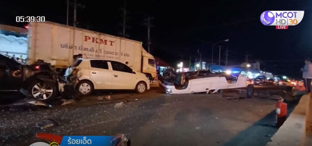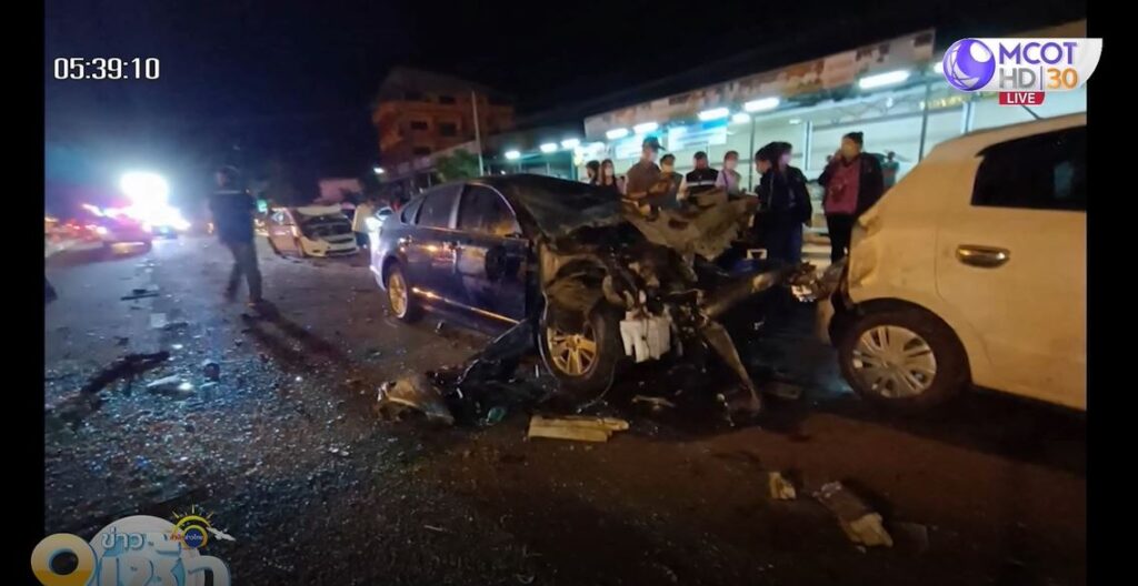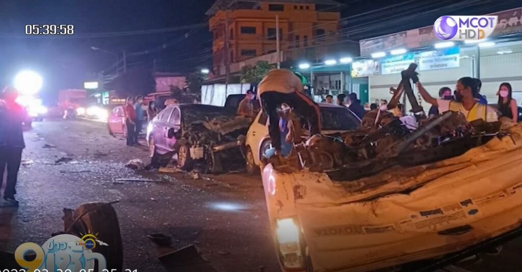 ร้อยเอ็ด 30 มี.ค. – รถเก๋งซิ่งแหลกไม่สนว่าเป็นย่านตลาดหรือชุมชน สุดท้ายพุ่งเสยท้ายกระบะ ก่อนพลิกคว่ำหลายตลบแล้วไถลชนรถที่จอดอยู่ริมถนนอีก 5 คัน