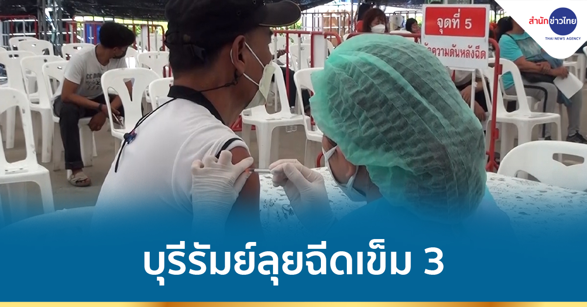 สาธารณสุขจังหวัดบุรีรัมย์ ร่วมกับหลายหน่วยงาน เร่งเดินหน้าฉีดวัคซีนเข็ม 3 ให้กับประชาชนทุกกลุ่มให้ครอบคลุมมากที่สุด ตั้งเป้าให้ได้ 600,000 คนภายในเดือนมิถุนายนนี้ โดยเฉพาะกลุ่ม 608 เพื่อหวังสร้างภูมิคุ้มกันหมู่ ลดความรุนแรงและอัตราการเสียชีวิตหากติดเชื้อโควิด-19 เป็นการเตรียมพร้อมรองรับการประกาศโควิด เป็นโรคประจำถิ่น ที่จะเริ่มในวันที่ 1 ก.ค.2565 เป็นต้นไป นอกจากประชาชนจะสามารถรับบริการวัคซีนได้ที่ รพ.ทั้ง 23 อำเภอ และ รพ.สต.ทุกแห่งแล้ว ยังจัดเจ้าหน้าที่ลงพื้นที่ไปฉีดวัคซีนให้ผู้สูงอายุที่ไม่สะดวกเดินทางไปรับบริการที่รพ. -สำนักข่าวไทย