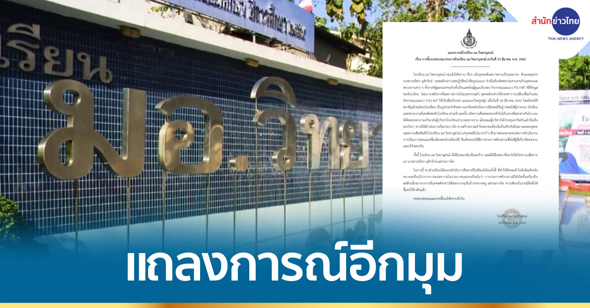 แถลงการณ์โรงเรียน มอ.วิทยานุสรณ์ผ่านทางเพจเฟซบุ๊กของโรงเรียน ชี้แจงกรณีที่ทางโรงเรียนประกาศพ้นสภาพนางสาวอริสรา มุสิกรักษ์ ครูแนะแนว เมื่อ 25 มีนาคมที่ผ่านมา ด้วยเหตุผลว่าบุคคลดังกล่าวเคยปฏิบัติหน้าที่ครูแนะแนว และเป็นแอดมินดูแลเว็บเพจ “กิจกรรมแนะแนว PSU WIT” ที่มีข้อมูลของโรงเรียน โดยภายหลังการพ้นสภาพการเป็นบุคลากรแล้ว บุคคลดังกล่าวเปลี่ยนชื่อเว็บเพจดังกล่าว เป็นชื่อ “แนะแนวกับครูหญิง” โดยยังคงใช้ตราสัญลักษณ์ของโรงเรียน ส่งผลให้เกิดความสับสน ทางคณะผู้บริหารประชุมเห็นตรงกันว่า หากมิได้ดำเนินการใดๆ อาจสร้างความเข้าใจคลาดเคลื่อนในข้อเท็จจริงถึงสถานะของบุคคลและความสัมพันธ์กับโรงเรียน อาจส่งผลกระทบต่อการเรียนการสอนและชื่อเสียงของโรงเรียนได้ จึงเห็นชอบให้มีการประกาศดังกล่าวเพื่อให้ผู้ที่เกี่ยวข้องทราบและเข้าใจตรงกัน ทั้งนี้ โรงเรียนมิได้มีเจตนาอันเป็นผลร้าย และมิได้มีเจตนาที่จะก่อให้เกิดความเสียหายแก่นางสาวอริสรา ทางโรงเรียนตระหนักถึงการสื่อสารที่ไม่ชัดแจ้ง ที่ทำให้สังคมเข้าใจถึงข้อเท็จจริงคลาดเคลื่อนไปจากการแปลความในประกาศ และขอยืนยันว่าประกาศดังกล่าวมิได้เกิดขึ้น หรือเป็นผลสืบเนื่องมาจากการที่บุคคลดังกล่าวได้สอบบรรจุเป็นข้าราชการครูแต่ประการใด