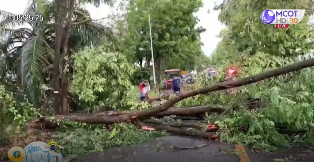 นอกจากนี้ยังมีต้นไม้ขนาดใหญ่ล้มขวางถนนสายหนองชาก-วิทยาลัยเทคนิคชลบุรี เจ้าหน้าที่เทศบาลหนองชาก และกู้ภัย ต้องนำเลื่อยยนต์มาตัด นำรถไถมาดันต้นไม้ให้หลบลงข้างทาง