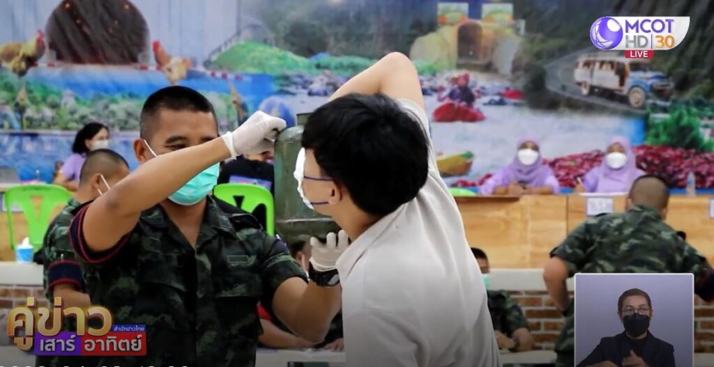 ด้านการคัดเลือกทหารกองเกินเข้าเป็นทหารกองประจำการเขตอำเภอเมืองอุบลราชธานี คัดเลือกรวม 4 วัน วันนี้เป็นวันแรกมีคนเข้าเกณฑ์จาก 3 ตำบล คือ ตำบลปทุม กุดลาด และขามใหญ่ 350 คน คัดเลือกเอา 74 คน ปีนี้ยังมีคนกลุ่มเสี่ยงติดโควิด-19 เข้ารับการคัดเลือก 5-6 คน เจ้าหน้าที่ต้องแยกคนกลุ่มเสี่ยง ทำจุดให้นั่งรอไม่ให้เข้าไปในหอประชุมที่ใช้เป็นที่คัดเลือกเพื่อป้องกันการแพร่ระบาด ส่วนผู้ป่วยติดเชื้อที่ต้องเข้ารับการคัดเลือกปีนี้ อนุญาตให้ญาตินำใบตรวจหาเชื้อและใบสั่งให้กักตัวของเจ้าหน้าที่สาธารณสุขในพื้นที่มายืนยันเป็นผู้ป่วยติดเชื้อใช้ขอผ่อนผันไปคัดเลือกในปีหน้าแทน .-สำนักข่าวไทย