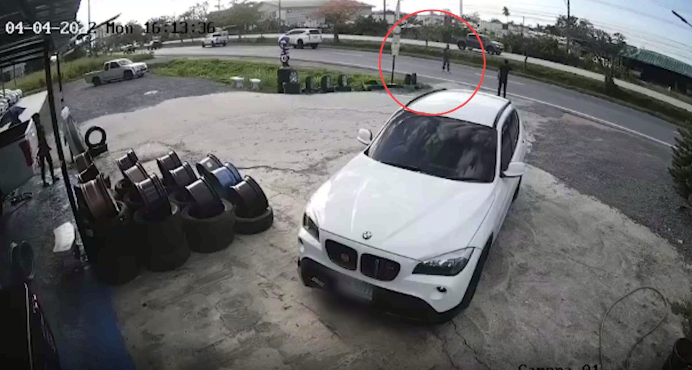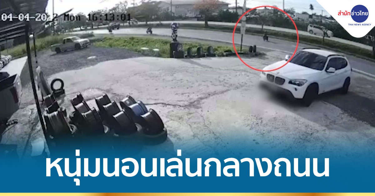 ชลบุรี 5 เม.ย.- กล้องวงจรปิดจับภาพชายเเปลกหน้าวัย 25 ปี นอนเล่นอยู่กลางถนนที่มีรถสัญจรไปมา ซึ่งรถแต่ละคันต่างพากันชะลอความเร็ว บริเวณสายนิคมอุตสาหกรรมอิสเทรินซีบอร์ด ตำบลบ่อวิน อำเภอศรีราชา จังหวัดชลบุรี จนมีพลเมืองดีช่วยเรียกให้หลบมาริมทางเพราะหวั่นเกิดอันตราย