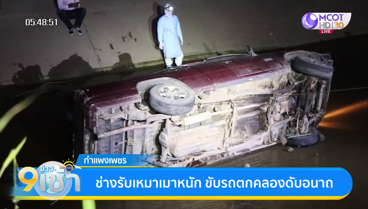 เมื่อเวลา 19.50 น. วานนี้ (5 เม.ย.) พ.ต.ท.ณัฐวุฒิ สิงพา พนักงานสอบสวน สภ.เมืองกำแพงเพชร ได้รับแจ้งมีอุบัติเหตุรถยนต์พุ่งตกลงไปในคลองชลประทาน มีผู้เสียชีวิตในที่เกิดเหตุ 1 ราย จึงเดินทางไปตรวจสอบ พร้อมอาสาสมัครกู้ภัยมูลนิธิสว่างกำแพงเพชรธรรมสถาน