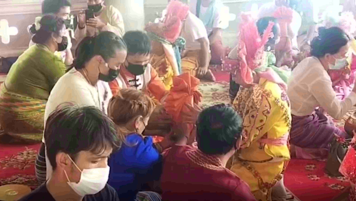 แต่ปีนี้มีการทำแคร่ไม้ไผ่ ประดับตกแต่งด้วยกระดาษสีและสายรุ้งสวยงามทำเป็นซุ้มให้ส่างลองนั่ง เดินรอบพระอุโบสถ 3 รอบ และมีคนหาม 4 คน เดินเต้นและโยกไปมา ตามจังหวะเครื่องดนตรี ซึ่งส่างลองที่นั่งบนแคร่ไม้ไผ่ก็ต้องนั่งโยกและระวังไม่ให้ตกด้วย ต้องหาที่จับหรือยึดไว้ ปีนี้มีส่างลองที่บรรพชาเป็นสามเณรจำนวน 9 รูปเพื่อปฎิบัติธรรม ในช่วงปิดภาคเรียน ซึ่งพ่อแม่ก็จะภูมิใจที่ลูกชายได้บวชทดแทนบุญคุณและเชื่อว่าจะได้บุญกุศลที่ยิ่งใหญ่และยังเป็นการสืบทอดพระพุทธศาสนา ทำให้แต่ละปีมีขบวนแห่ที่ยิ่งใหญ่สนุกสนาน ในการรวมตัวของญาติพี่น้องที่มาร่วมงานบุญ ซึ่งถือเป็นประเพณีของชาวไทยใหญ่.-สำนักข่าวไทย