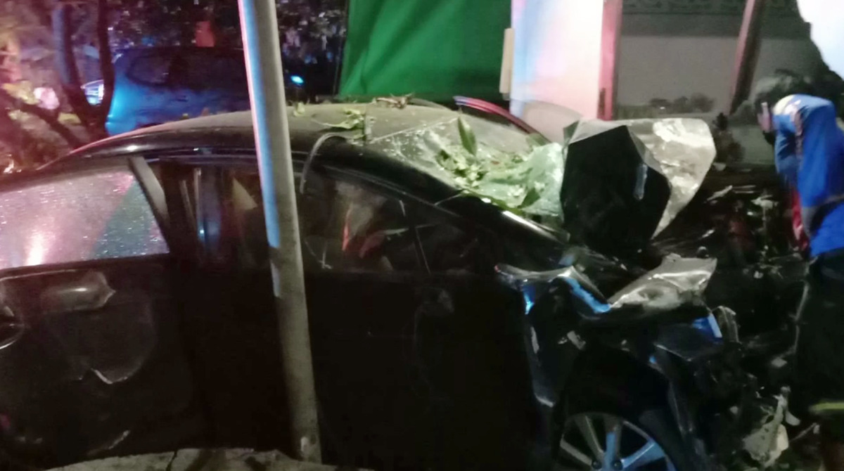 บุรีรัมย์ 8 เม.ย. – เจ้าหน้าที่เทศบาลตำบลพลับพลาชัย จ.บุรีรัมย์ ซิ่งเก๋งฝ่าความมืดเสียหลักพุ่งชนต้นไม้และบ้านริมถนนพังยับ เสียชีวิตคาที่ ส่วนตายายที่อาศัยในบ้านรอดหวุดหวิด ชาวบ้านใกล้จุดเกิดเหตุเผยขับมาเร็ว ก่อนเสียหลักเกิดอุบัติเหตุ