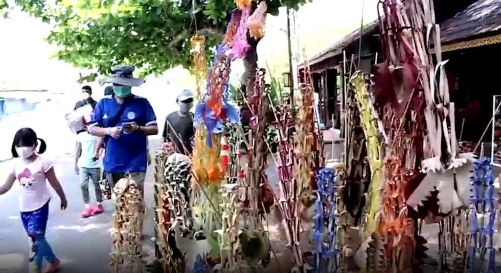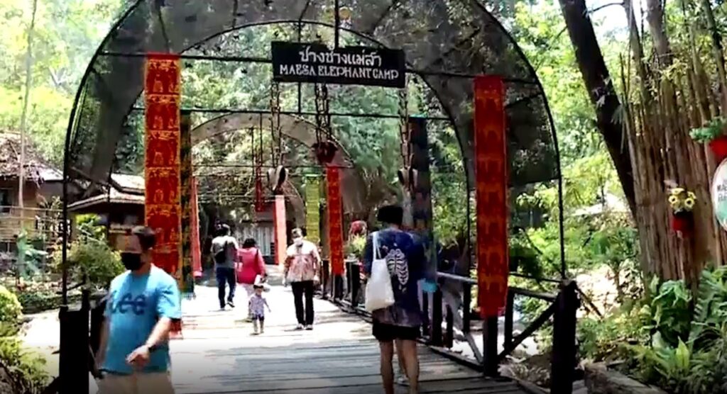 พาไปชมความน่ารักของช้างน้อยแสนรู้ ลงเล่นน้ำสงกรานต์ในลำห้วยแม่สา ภายในปางช้างแม่สา อ.แม่ริม จ.เชียงใหม่ ซึ่งมีการจัดตกแต่งสถานที่ให้บรรยากาศรับกับเทศกาลประเพณีสงกรานต์ ด้านประตูทางเข้ามีการก่อเจดีย์ทราย ประดับด้วยตุงไส้หมู ที่ทำมาจากกระดาษมูลช้างเพื่อช่วยลดมลภาวะของปางช้างแม่สา ที่นำมาตกแต่งได้อย่างสวยงาม และตามสะพานก็ประดับด้วยตุงชัย ต้อนรับนักท่องเที่ยว โดยมีช้างน้อยใหญ่มารอต้อนรับ