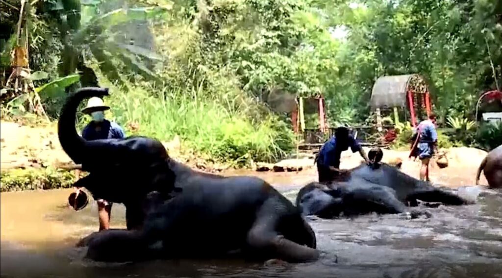 ไฮไลท์ที่นักท่องเที่ยวชื่นชอบมาก คือ เมื่อทางควาญช้างได้นำบรรดาช้างน้อยวัย 5-9 ขวบ อย่างพลายขุนศึก พังเอื้องคำและพังออร์ก้า ลงไปเล่นน้ำกับพี่ๆ ควาญ เป็นการคลายร้อน ช้างน้อยพ่นน้ำ และเล่นน้ำสงกรานต์กันอย่างสนุกสนาน ท่ามกลางความประทับใจ ของนักท่องเที่ยวที่พากันบันทึกภาพความน่ารักของช้าง โดยปางช้างแม่สา ยังคงเปิดให้เข้าชมฟรีทุกวันตั้งแต่เวลา 09.00-15.30 น. ของทุกวัน ภายใต้มาตรการคุมเข้มในเรื่องการแพร่ระบาดของโควิด-19