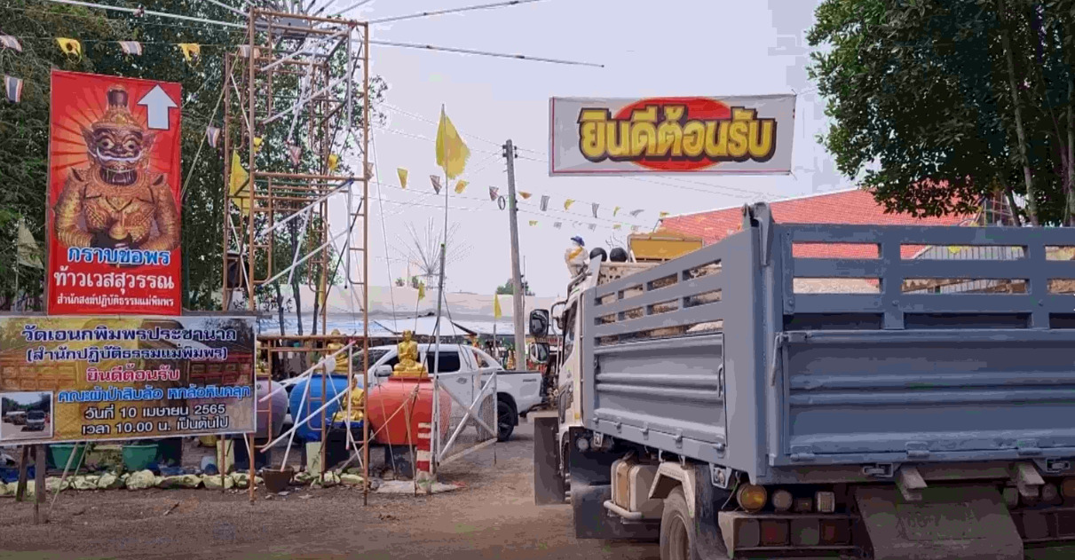 นายอนุรักษ์ บอกว่า ช่วงสถานการณ์การแพร่ระบาดของเชื้อไวรัสโควิด-19 ทำให้เศรษฐกิจซบเซา ธุรกิจถมที่ดินก็ได้รับผลกระทบ ตนก็ไม่มีงานถมที่ จึงทำให้ขาดรายได้เดือดร้อนหนัก ไม่รู้จะหันหน้าไปพึ่งใคร เมื่อหลายเดือนก่อนตนได้มีโอกาสเข้ามาทำบุญที่วัดแห่งนี้ เห็นท้าวเวสสุวรรณขนาดใหญ่ สูง 5 เมตร 2 ตน ตั้งตะหง่านดูน่าเกรงขาม มาทราบที่หลังว่าภายในบรรจุผงพระสมเด็จเกตไชโยไว้ จึงจุดธูปตั้งจิตอธิษฐานขอให้มีงาน มีเงิน หากสมความปรารถนา จะตั้งกองผ้าป่าหินคลุกมาถมพื้นที่ดิน แก้ปัญหาน้ำท่วมให้วัดแห่งนี้ ซึ่งไม่น่าเชื่อจากนั้น ไม่นานงานก็เข้ามาเรื่อยๆ ไม่ขาดสาย ทั้งที่เพื่อนร่วมธุรกิจหลายรายต้องเจ๊ง หยุดกิจการไปแล้ว ตนจึงไปเล่าเรื่องราวให้พรรคพวกในวงการถมที่ ซึ่งหลายคนก็ต้องการมาทำบุญร่วมกับตน จึงได้มาร่วมทำบุญกัน 62 คัน มูลค่าคันละ 1,500 บาท เป็นเงิน 93,000 บาท นอกจากนี้ยังมีเงินทำบุญสมทบอีก 15,999 บาท ด้วย.-สำนักข่าวไทย