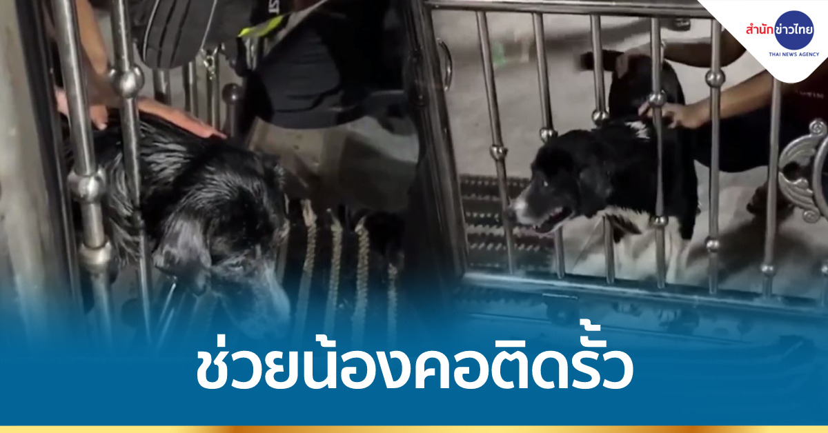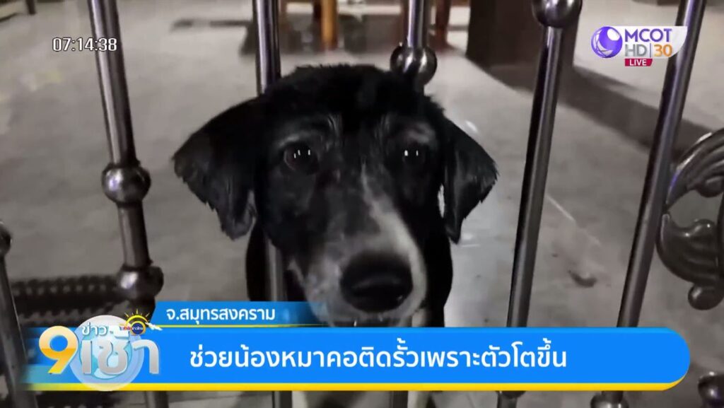 สมุทรสงคราม 13 เม.ย.- น้องหมาสีดำคอติดรั้ว เจ้าหน้าที่ต้องใช้อุปกรณ์ตัดถ่างเข้าช่วยเหลือ เจ้าของเผยตอนยังเล็ก “เจ้าบิ๊ก” จะเดินลอดรั้วออกไปเที่ยวเล่นเป็นประจำ