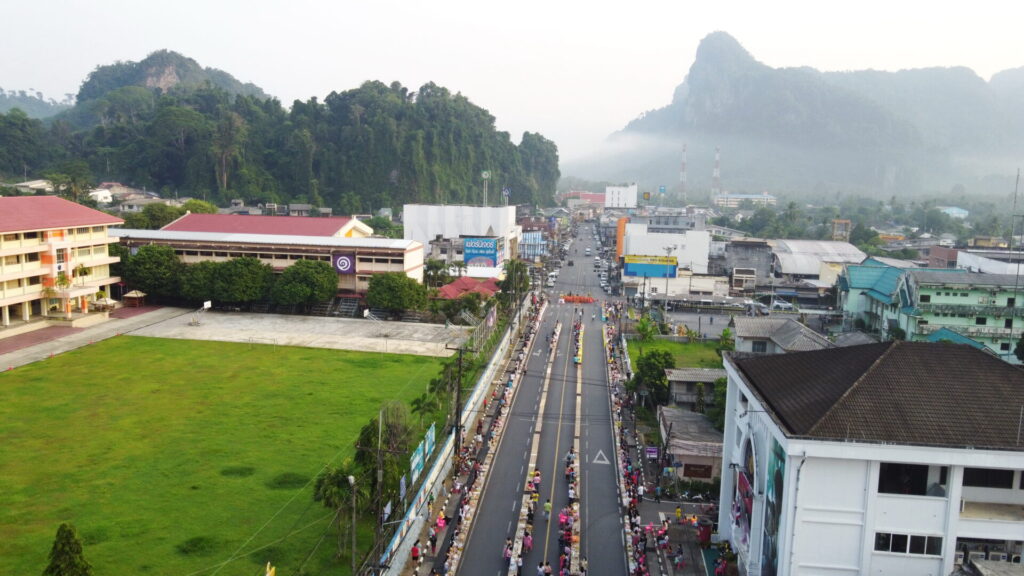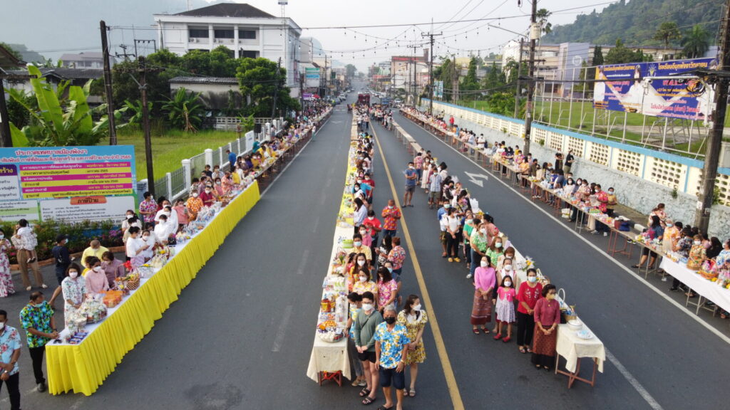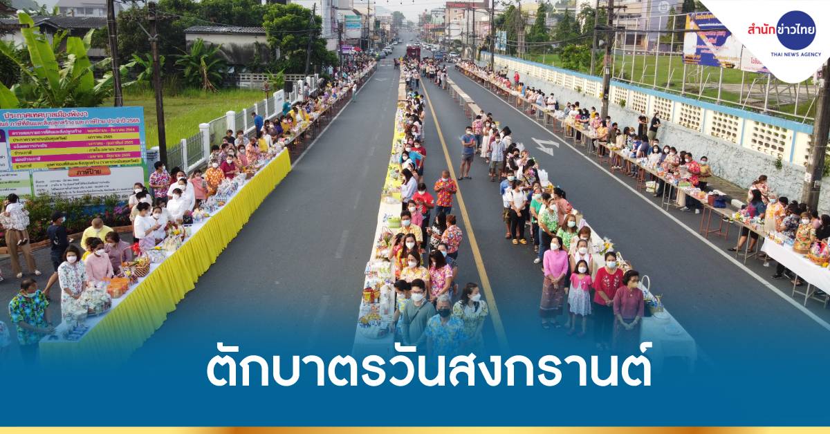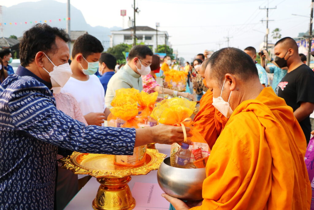 พังงา 13 เม.ย.-ชาวพังงาร่วมทำบุญตักบาตร สรงน้ำพระ สืบสานประเพณีวันสงกรานต์ปี 2565