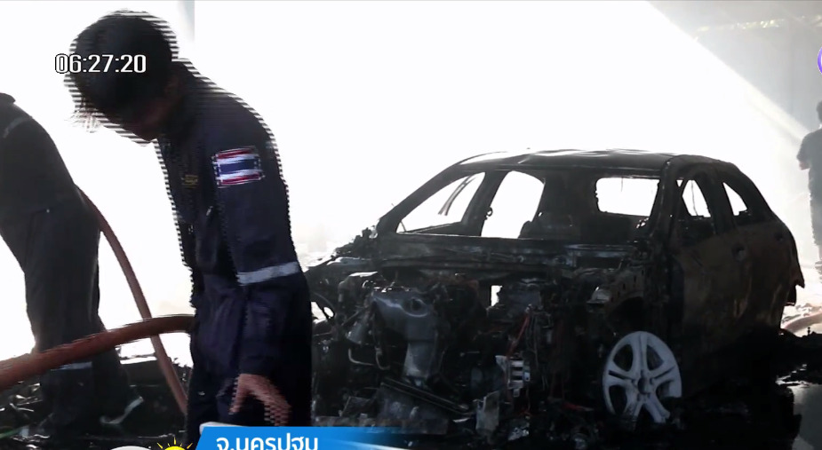 สอบถามเจ้าของบ้าน บอกว่า ขณะเกิดเหตุไม่อยู่บ้าน มีเพียงลูกชายและลูกสาวดูทีวีอยู่ที่ชั้น 3 จู่ๆ เกิดไฟลุกไหม้เศษไม้และเศษโฟมใต้ต้นมะพร้าว ลุกลามไปไหม้รถเบนซ์ รุ่น A180 รถฮอนด้าแจ๊ส ฮอนด้าซีวิค รถกระบะเชฟโรเลต และรถจักรยานยนต์ ซึ่งจอดอยู่ในโรงรถหน้าบ้านเสียหายทั้งหมด เบื้องต้นสันนิษฐานว่า สาเหตุน่าจะเกิดจากไฟฟ้าลัดวงจร ส่วนมูลค่าความเสียหายยังไม่สามารถประเมินได้ เพราะรถแต่ละคันไม่รู้จะซ่อมได้หรือไม่