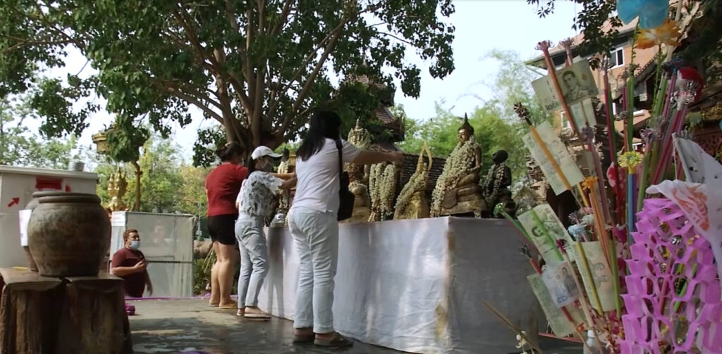 ขณะที่อีกหลายครอบครัว ไปสรงน้ำพระพุทธสิหิงค์ พระพุทธรูปคู่เมืองเชียงใหม่ ที่วัดพระสิงห์วรมหาวิหาร เพื่อความเป็นสิริมงคล ส่วนใหญ่บอกว่า ขอพรให้ครอบครัวมีความสุข สุขภาพแข็งแรง รวมไปถึงคนไทยทั่วประเทศให้มีกำลังใจผ่านพ้นช่วงวิกฤติโควิด-19 โดยเร็วด้วย