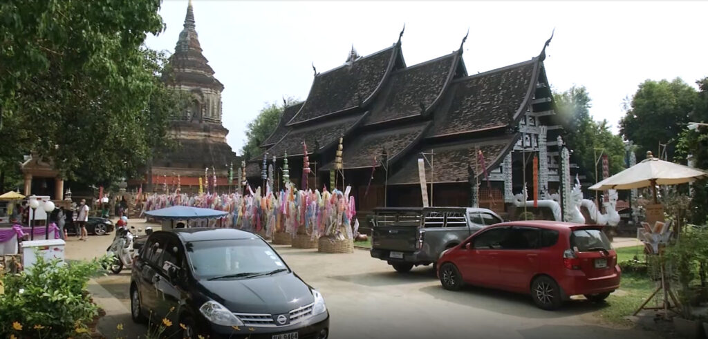 ที่วัดโลกโมฬี วัดเก่าแก่อีกแห่งของเมืองเชียงใหม่ ซึ่งจะเห็นบรรยากาศความคึกคักของผู้คนที่เข้าวัดมาทำบุญเพื่อความเป็นสิริมงคลตามประเพณีปี๋ใหม่เมืองหรือสงกรานต์ที่เชียงใหม่ และปีนี้แม้จะไม่มีการเล่นน้ำสงกรานต์รอบคูเมือง แต่พ่อค้าแม่ค้ายืนยันว่า ขายของช่วงสงกรานต์ดีที่สุดในรอบ 3 ปี