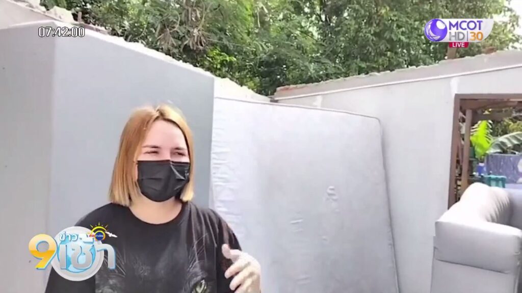 น.ส.งามตา โยธานันท์ ชาวบ้านใน ต.คู้ยายหมี อ.สนามชัยเขต จ.ฉะเชิงเทรา แม่ของหนูน้อยในคลิป เล่าทั้งน้ำตา ว่าตนเองเป็นเพียงพนักงานเซเว่น ไม่รู้จะทำอย่างไรกับสภาพบ้านที่พังเกือบทั้งหลัง จากพายุหมุนพัดหลังคาปลิว สิ่งลอยขึ้นฟ้า ตอนนี้ตนต้องไปอาศัยนอนบ้านยายในห้องเล็ก รวม 10 คน
