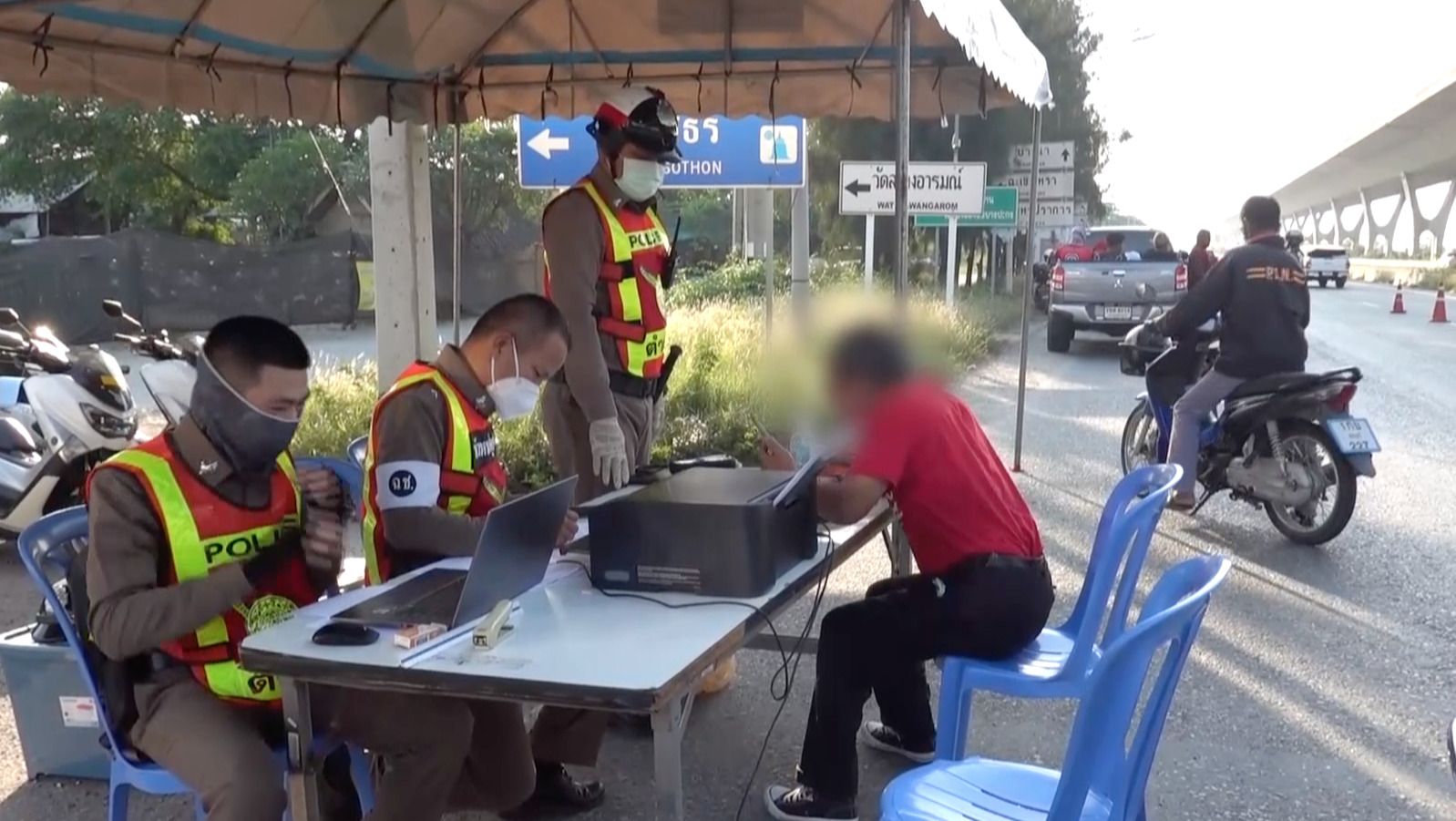 เมื่อเวลา 17.00 น. วันที่ 15 เมษายน 65 พ.ต.อ.กิตติสัณห์ ชะนะ ผกก.สภ.บางปะกง จ.ฉะเชิงเทรา พร้อมกำลังตำรวจจราจรรวม 11 นาย ตั้งด่านจุดตรวจจุดสกัดเมาแล้วขับวันที่ 5 เพื่อกวดขันลดอุบัติเหตุในช่วงการเดินทางเทศกาลสงกรานต์ ซึ่งตั้งด่านบริเวณหน้า สภ.บางปะกง บนถนนเทพรัตน (บางนา-ตราด) กม.46-47 ช่องคู่ขนาน ขาเข้า กทม. หมู่18 ต.บางปะกง อ.บางปะกง ใช้เวลาตั้งด่าน 1 ชั่วโมง สามารถตรวจเป่าแอลกอฮอล์พบค่าเกิน 50 มิลลิกรัมเปอร์เซ็นต์ เกินทั้งหมด 5 คน โดยส่วนใหญ่จะขับรถจักรยานยนต์ ซึ่ง 1 ในนั้นเป็นชายอายุ 61 ปี เมาแล้วขี่รถจักรยานยนต์เข้าด่านตรวจ พอให้เป่าวัดค่าระดับแอลกอฮอล์พบว่าสูงเกินค่า 200 และแสดงอาการโวยวายไม่ยอมให้เจ้าหน้าที่ควบคุมตัว ซึ่งตำรวจต้องเจรจาให้เข้าใจก่อนนำตัวไปดำเนินคดี