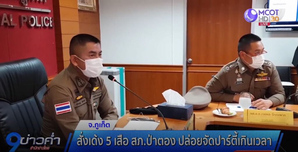 ภูเก็ต 17 เม.ย. – เด้ง 5 เสือ สภ.ป่าตอง ช่วยราชการกองบังคับการตำรวจภูธรจังหวัด พร้อมเสนอผู้ว่าฯ ภูเก็ต สั่งปิดโรงแรมดัง เหตุปล่อยปละละเลยให้จัดปาร์ตี้ละเมิดคำสั่งจังหวัด