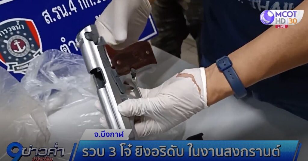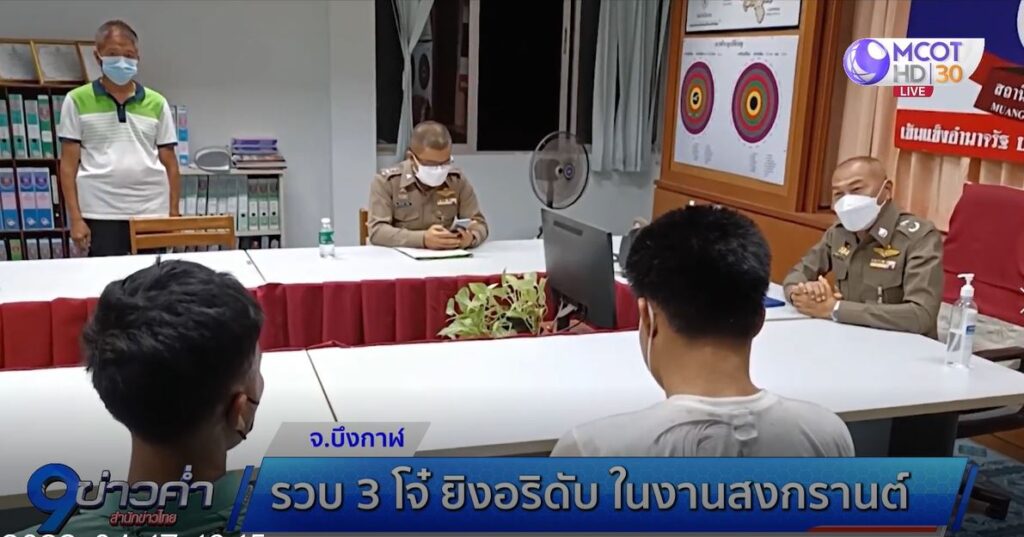 บึงกาฬ 17 เม.ย. – รวบ 3 วัยรุ่น ยิงอริเสียชีวิตในงานฉลองสงกรานต์ อ้างผู้ตายกับเพื่อนถือมีดวิ่งข้ามถนนจะมาทำร้ายจึงยิงปืนสวนออกไป 1 นัด โดยไม่หวังผล ตำรวจแจ้ง 3 ข้อหาหนัก