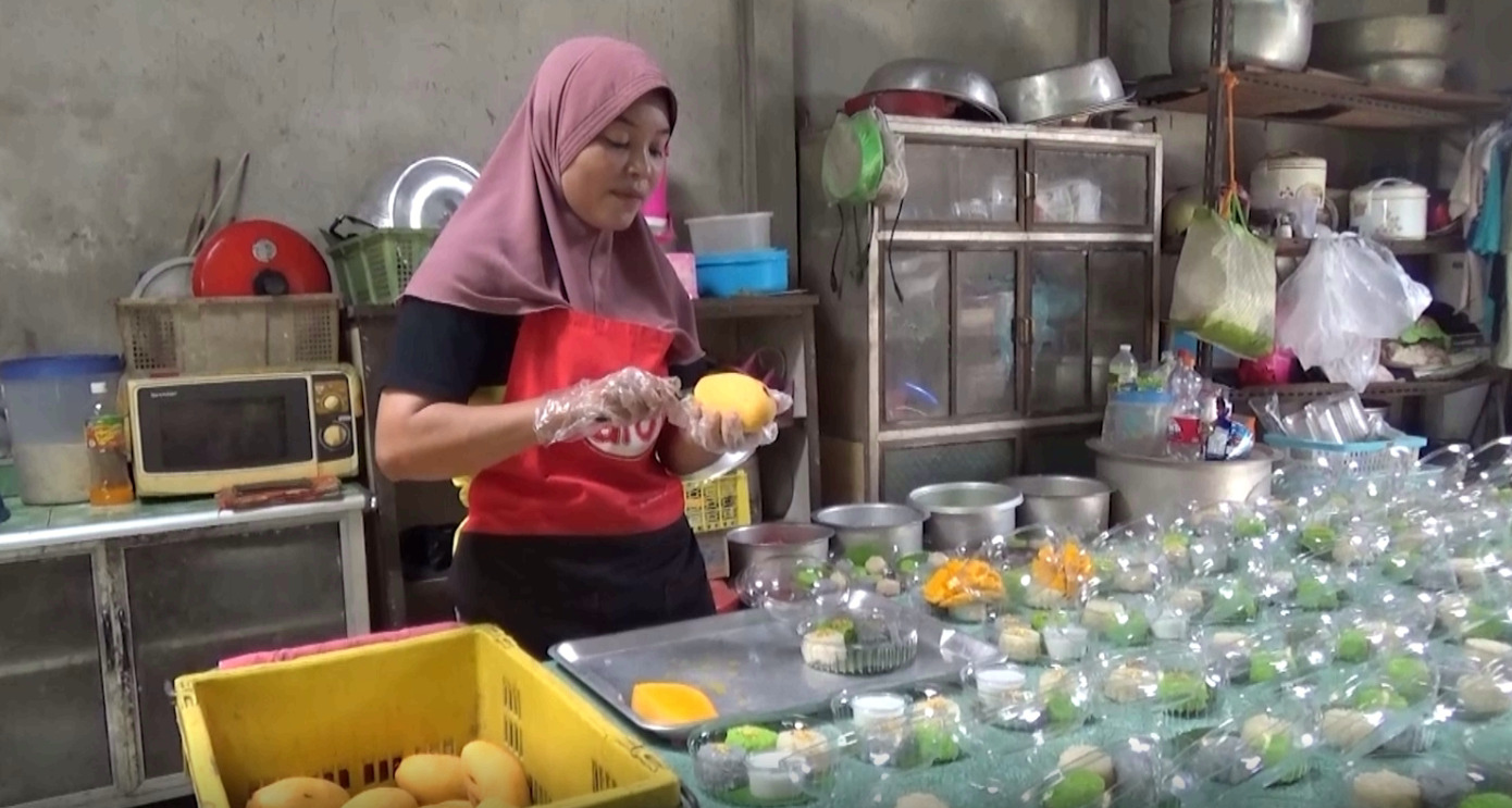 น.ส.สุกัญญา อดีตพนักงานทำความสะอาดบนเครื่องบิน ใช้บ้านพักของตัวเองที่ อ.ควนโดน จ.สตูล กลายเป็นครัวทำข้าวเหนียวมะม่วงแพ็กลงกล่องอย่างสวยงาม เธอเล่าว่าช่วงปลายเดือนมี.ค.65 เป็นช่วงที่มะม่วงเริ่มออกสู่ตลาด เป็นคนที่ชอบรับประทานข้าวเหนียวมะม่วงอยู่แล้ว จึงคิดที่จะทำขาย แต่ตนเองทำไม่เป็น จึงศึกษาจากยูทูบ จากนั้นก็ทดลองทำให้ครอบครัวญาติพี่น้องได้ชิม ญาติบอกว่าอร่อยทำขายได้ ตนจึงเปิดรับออเดอร์ เริ่มทำได้เพียงเดือนเศษ วันแรกที่ทำขายได้ 30 กล่อง แต่เมื่อทำปรากฏว่าข้าวเหนียวแฉะไปหน่อย ออเดอร์ที่รับมาตนจึงแจกฟรีทั้งหมด ลูกค้าก็ไม่ได้ว่าอะไร เมื่อทดลองทำจนชำนาญ
