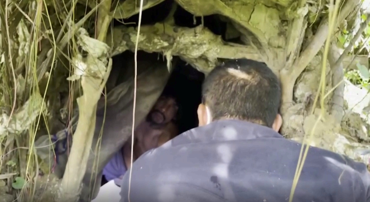 สงขลา 19 เม.ย.- คิดได้ไง! ผู้ต้องหาคดียาเสพติดขุดจอมปลวกขนาดใหญ่ใช้เป็นที่ซ่อนตัว หวังอำพรางเจ้าหน้าที่หนีการจับกุม ต้องให้ญาติช่วยเจรจา สุดท้ายมอบตัวโดยดี