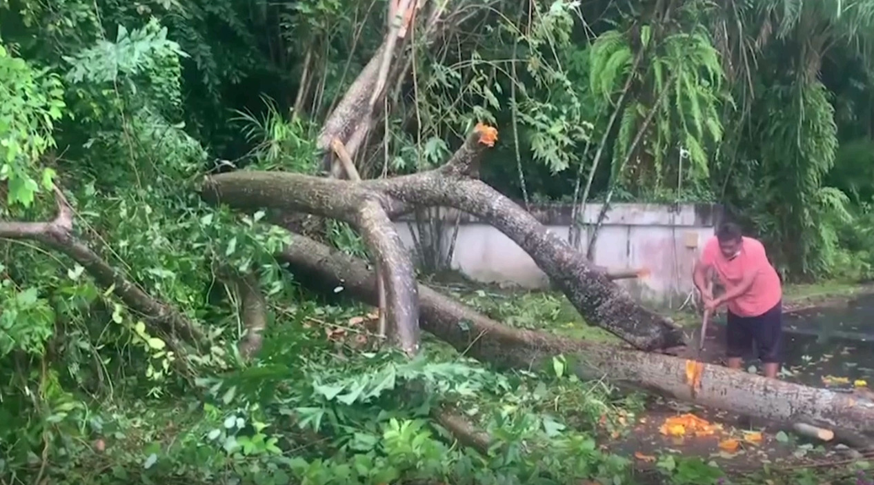 หลังเกิดเหตุ นายวันชัย ตันวัฒนะ ผู้อำนวยการสวนสัตว์สงขลา พร้อมเจ้าหน้าที่สวนสัตว์ได้เร่งตัดต้นไม้ต้นนี้ออกจากถนนเพื่อเปิดทางให้สามารถสัญจรเข้าออกได้ตามปกติ.-สำนักข่าวไทย