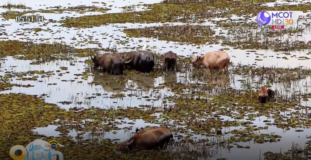 ฝูงควายน้ำทะเลน้อย จังหวัดพัทลุง ล้มตายมากกว่า 100 ตัว จากการขาดแคลนอาหารสัตว์ เนื่องจากในช่วงเดือนพฤศจิกายน 2564-เมษายน 2565 มีฝนตกมาอย่างต่อเนื่องและเกิดน้ำท่วมขังในพื้นที่การเลี้ยงควายน้ำ 3 ครั้ง