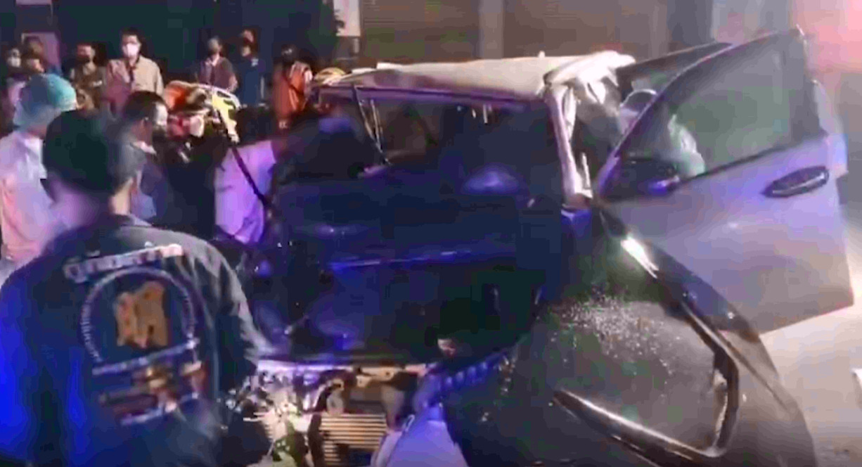 พนักงานสอบสวน สภ.เมืองพัทยา ไปตรวจสอบอุบัติเหตุรถยนต์ชนแบร์ริเออร์ มีผู้ได้รับบาดเจ็บหลายคนบริเวณทางขึ้นทางต่างระดับมอเตอร์เวย์สาย 7 ตอน 5 ฝั่งขาเข้าชลบุรี อ.บางละมุง