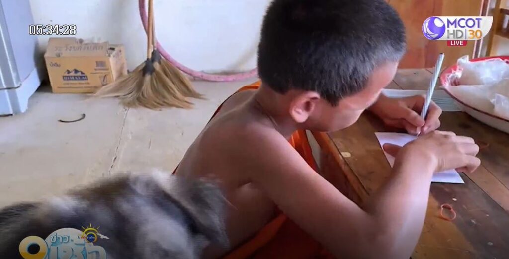สามเณรธนโชติ บุญเกิด หรือเณรเปรม อายุ 10 ขวบ บอกว่า หลังกลับจากบิณฑบาต ตนไม่เห็นโยมยาย จึงเขียนจดหมายถึงโยมยายให้ช่วยพาเจ้าดุ่ยไปหาหมอ ตรวจว่าเป็นอะไร เหลืออีก 3 วัน เณรก็จะสึกกลับไปเรียนออนไลน์ที่บ้านอยู่กับยาย ซึ่งเณรคงจะคิดถึงเจ้าดุ่ยมาก