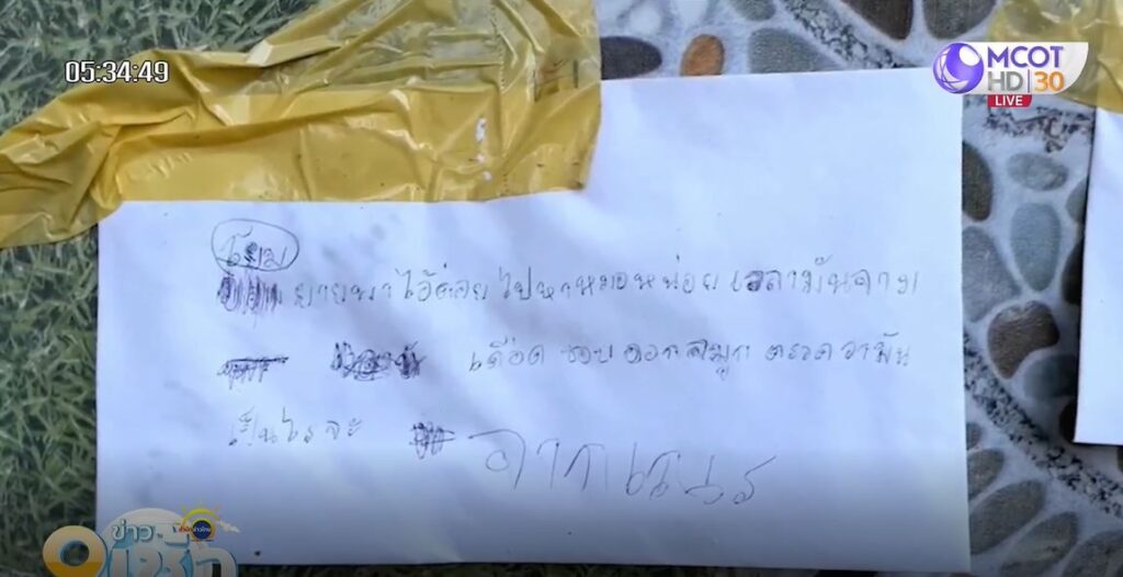 นางสมควร เล่าว่า เมื่อวันที่ 20 เม.ย.ที่ผ่านมา ขณะตนขี่รถจักรยานยนต์เอาข้าวมาให้สุนัขที่วัดเหมือนเช่นทุกวัน สังเกตเห็นว่ามีซองจดหมาย 2 ซอง ติดอยู่ที่ฐานพระ เขียนด้วยลายมือ พร้อมมีรอยขีดลบตัวหนังสือว่า “โยมยายพาไอ้ด่อยไปหาหมอหน่อยเวลามันจาม เลือดชอบออกตามจมูก ตรวจว่ามันเป็นอะไร จากเณร” และอีกฉบับเขียนว่า “โยมยาย เณรขอร้องพาไอ้ด่อยไปหาหมอ โยมยายจำได้ไหมว่าตอนที่โยมยายพาไอ้แบคไปหาหมอ โยมยายบอกว่าดูแลมันให้ดีมันก็มี 1 ชีวิต จากเณร”