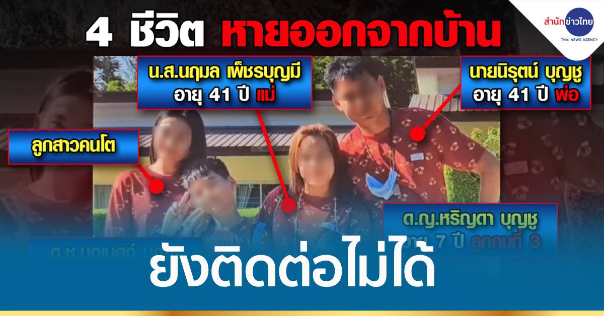 ช่วงสายที่ผ่านมาผู้สื่อข่าวได้เดินทางไปที่บ้านของนายล้วน บุญชู วัย 69 ปี ที่ อ.ศรีสำโรง จ.สุโขทัย ซึ่งเป็นบ้านพ่อของนายนิรุตต์ วัย 41 ปี ที่หายตัวไปพร้อมกับภรรยา รวมถึงลูกชายวัย 12 ปี และลูกสาววัย 7 ขวบ มาเป็นวันที่ 12 แล้ว พบนายล้วนพร้อมกับน้องอุ้ย ลูกสาวคนโตวัย 19 ปี ยังนั่งร้องไห้อยู่ตลอดเวลา จนถึงขณะนี้ทั้งสองคนยืนยันว่ายังไม่สามารถติดต่อนายนิรุตต์ และ น.ส.นฤมล ได้ พร้อมกับวิงวอนอีกครั้งขอให้พ่อกับแม่ติดต่อกลับมาที่บ้านด้วยเพราะทุกคนเป็นห่วงกันมาก