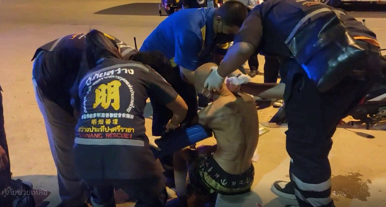 นายอรรถพล ผู้แจ้งบอกว่าตนเองเป็นผู้ก่อเหตุใช้ไม้ตีผู้ที่ได้รับบาดเจ็บเอง เนื่องจากชายคนดังกล่าวบุกรุกปีนเข้ามานอนในบ้าน จึงใช้ไม้ไล่ตีให้ออกจากบ้านไป และโทรแจ้งตำรวจให้มาจับ พร้อมพาเจ้าหน้าที่ไปตรวจสอบ ซึ่งเป็นเหมือนบ้านชาวประมงตั้งอยู่ริมทะเลใต้สะพานจุดชมวิวดังกล่าว พบทรัพย์สินและจีวรพระของผู้ที่ได้รับบาดเจ็บจริง จึงตรวจสอบเอกสารเบื้องต้นพบใบสุทธิ ชื่อพระบุญทา อายุ 74 ปี เกิดที่จังหวัดลำพูน แต่ไปบวชพระที่จังหวัดเชียงราย จึงนำทรัพย์สินทั้งหมดมาคืนให้กับพระบุญทา และมอบหมายให้เจ้าหน้าที่กู้ภัยนำส่งรักษาที่โรงพยาบาลแหลมฉบังต่อไป ซึ่งพระบุญทามาศรีราชาได้สองวันแล้ว และยังให้ผู้ก่อเหตุไปซื้อสุราซื้อบุหรี่มาให้กินด้วยทั้งสองวัน พอเมาสุราแล้วก็จะปีนบ้านเข้าไปนอนในห้องของเจ้าของบ้านก็เลยมีปากเสียงลงไม้ลงมือกัน ยอมรับว่าตนเองไม่ทราบว่าพระรูปนี้เป็นใคร สองวันที่ผ่านมาเดินมาบอกว่ารู้จักพ่อแต่พอไปถามพ่อ พ่อบอกไม่รู้จัก ซึ่งตนเองก็ไม่รู้ว่าเป็นพระจริงหรือพระปลอม แต่วันแรกที่มาพระก็ใช้ให้ไปซื้อเหล้าซื้อบุหรี่ โดยบอกว่าเป็นพระธุดงค์มา แต่ดูว่าไม่น่าจะใช่ พระที่ไหนจะกินหล้าแถมต้มหอยกินเองด้วย ปกติพระจะฉันเป็นเวลาแต่มันมันไม่ใช่ ตนเองจึงให้จำวัดที่ศาลานั่งเล่นหน้าบ้าน แต่พอตกกลางคืนหลวงตาก็ปีนเข้าไปนอนในบ้านของตนเอง ก็ให้ไปนอนข้างนอก พอมาวันนี้ตกกลางคืนหลวงตาก็ย่องๆ มาทางหลังบ้านบ้าง แอบปีนเข้าไปนอนในห้องนอนตนเองอีกซึ่งเป็นห้องส่วนตัว โดยแฟนตนเองจะมาตอนดึกๆ ซึ่งทำแบบนี้มันไม่ใช่แล้วจึงเชิญออกไปจากบ้านแล้วมีปากเสียงกัน จึงใช้ไม้ไล่ตีให้ออกไป โดยหลวงตาก็หยิบไม้หยิบมีดมาวางไว้รอบบ้านตัวเองด้วย