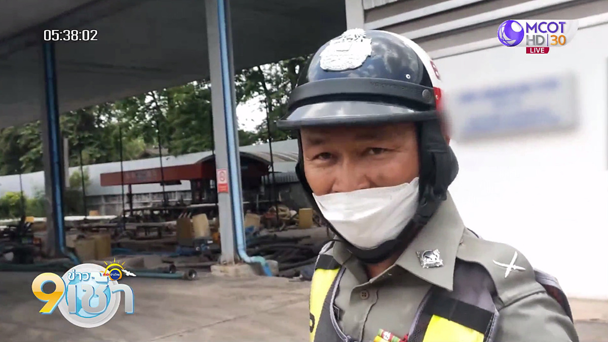 ด้าน ด.ต.มานะ นนทภา ผบ.หมู่ จร. สภ.เมืองอุดรธานี ตำรวจที่เกาะประตูรถน้ำมัน เล่าว่า ขณะตำรวจจราจร สภ.เมืองอุดรธานี กำลังตั้งด่านกวดขันวินัยจราจร บริเวณสี่แยกบายพาสบ้านจั่น ต.บ้านจั่น เวลาประมาณ 12.30 น. มีการแจ้งวิทยุมาว่า มีรถบรรทุกน้ำมันขับฝ่าสัญญาณไฟแดง จึงเป่านกหวีดให้หยุดและลงไปจอดช่องทางซ้าย แต่โชเฟอร์ไม่ยอมหยุด แถมพุ่งรถใส่จะเหยียบตำรวจ จึงขี่รถจักรยานยนต์ติดตามไป ซึ่งโชเฟอร์ได้หยุดรถบริเวณจุดกลับรถหน้าวิทยาลัยราชธานี ถนนเลี่ยงเมือง จึงสั่งให้โชเฟอร์ลงมาจากรถ เพื่อแสดงใบอนุญาตขับขี่ แต่โชเฟอร์ไม่ยอมลงจากรถ แถมยังขับรถออกไป ตนจึงเกาะประตูรถไปจนถึงบริษัทน้ำมัน ซึ่งคนขับเดินหนีเข้าไปในบริษัท จึงได้เชิญตัวออกมาสอบถาม