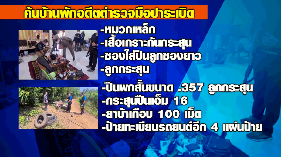 อุบลราชธานี 25 เม.ย.- ผกก.สภ.วารินชำราบ เตรียมขอหมายจับพร้อมตั้งชุดสกัดจับอดีตตำรวจกองกำกับการสืบสวนตำรวจภูธรจังหวัดอุบลราชธานีแล้ว หลังก่อเหตุปาระเบิดสังหารชนิด M67 ใส่บ้านชาวบ้าน เบื้องต้นยังไม่สรุปแรงจูงใจในการก่อเหตุ