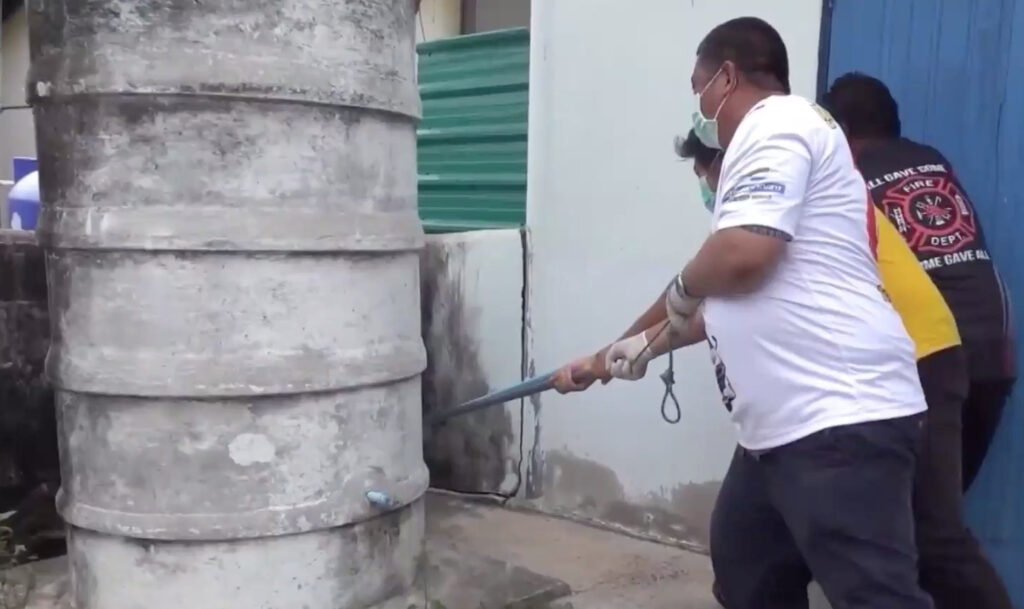หน่วยกู้ภัยเทศบาลตำบลท่าข้าม พร้อมอุปกรณ์จับสัตว์เลื้อยคลาน ตรวจสอบเหตุพบตัวเงินตัวทองขนาดใหญ่เข้าไปในห้องเช่าไม่มีเลขที่ พื้นที่หมู่ 3 ต.ท่าข้าม อ.บางปะกง จ.ฉะเชิงเทรา เมื่อไปถึงพบตัวเงินตัวทองขนาดใหญ่ ยาว 2.20 เมตร นอนอยู่บริเวณท่อระบายน้ำหน้าห้องเช่า ทางเจ้าหน้าที่พยายามใช้บ่วงเชือกคล้องคอ และต้องออกแรงดึงหางให้ตัวเงินตัวทองออกมาจากท่อระบายน้ำ จากนั้นก็ใช้เชือกรัดขา ก่อนจะใช้คนถึง 4 คนในการยกตัวขึ้นท้ายรถกระบะเพื่อนำไปปล่อยคืนสู่แหล่งธรรมชาติ