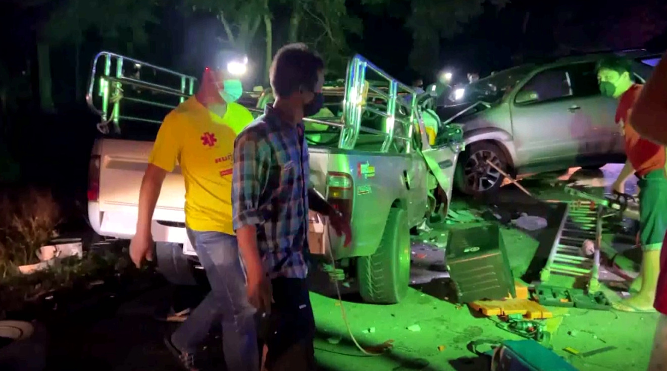 ตราด 27 เม.ย.- อุบัติเหตุกระบะซิ่งแซงซาเล้งแต่ไม่พ้น ชนประสานงากระบะอีกคัน ดับ 3 ศพ