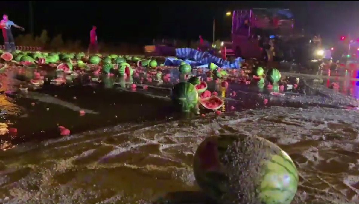 เหตุเกิดเมื่อเวลา 23.30 น. วานนี้ (27 เม.ย.) ตำรวจ สภ.บ้านบึง รับแจ้งมีอุบัติเหตุรถกระบะชนกับรถบรรทุก บนถนนสาย 344 บ้านบึง-แกลง ขาเข้าแกลง ช่วงไฟเหลืองหนองปรือเก่า หมู่ 1 ต.หนองอิรุณ อ.บ้านบึง จ.ชลบุรี ในที่เกิดเหตุพบรถกระบะอีซูซุ สีบรอนซ์ ป้ายแดง ทะเบียน กทม. ติดตั้งคอกเหล็กสำหรับบรรทุกแตงโมเต็มคันรถ จอดขวางถนนช่องจราจรซ้าย สภาพด้านหน้ารถพังยับเยิน ตรวจสอบที่เกิดเหตุพบแตงโมตกหล่นบนพื้นถนนเสียหายจำนวนมาก ส่วนคนขับรถบรรทุกหลบหนีไปจากที่เกิดเหตุ