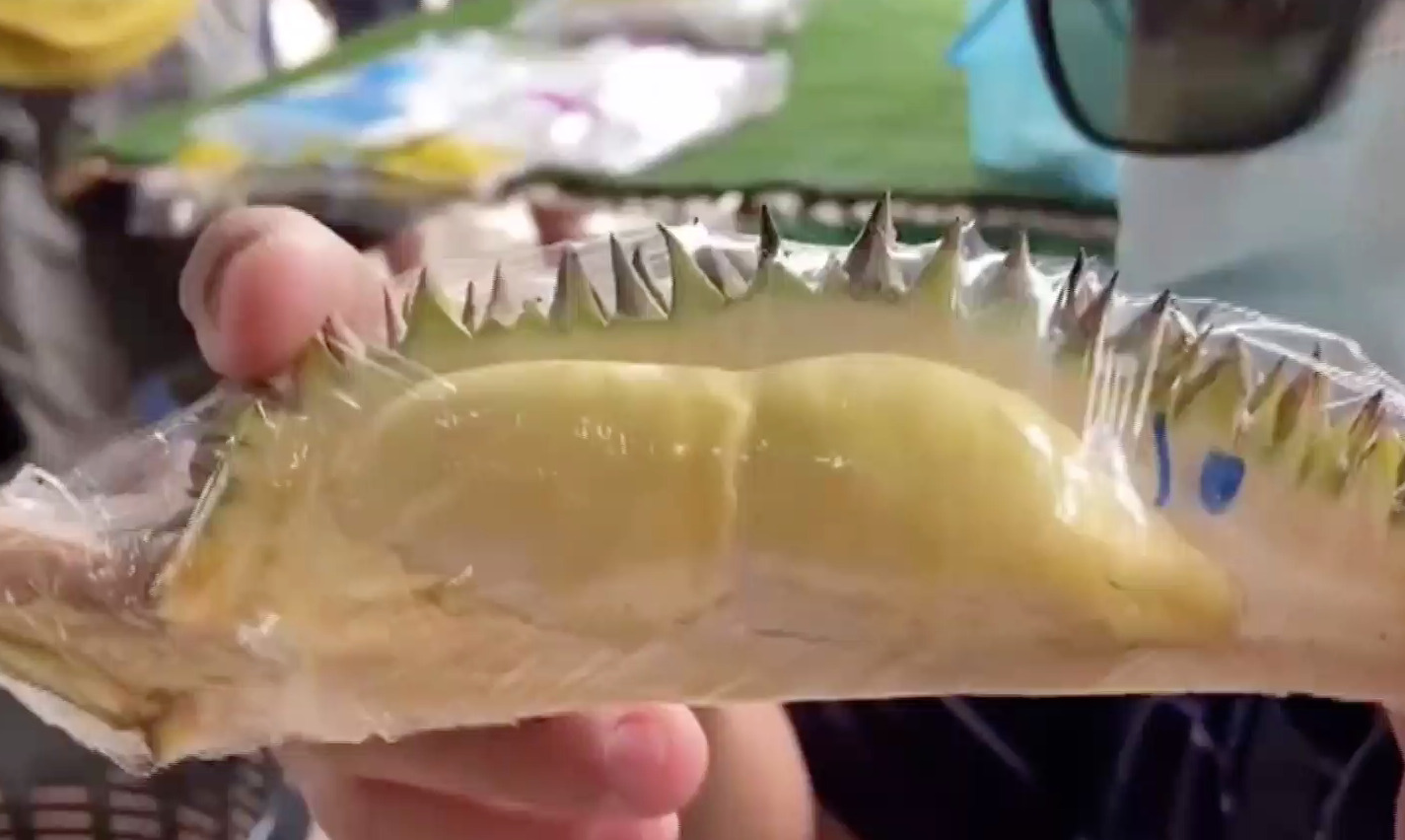 ชลบุรี 28 เม.ย.- พาไปที่ร้านทุเรียนแห่งหนึ่งบริเวณ 5 แยกวัดพลับ อ.พนัสนิคม จ.ชลบุรี ที่ร้านนี้ขายทุเรียนมีแบบขายยกลูกและแบ่งขายเป็นพู แกะขายเริ่มที่ราคา 10 บาทไปจนถึง 60 บาทต่อพู เพี่อให้คนมีเงินน้อยได้ซื้อกินตามงบ หากเป็นคนท้องยังแจกให้กินฟรีอีกด้วย