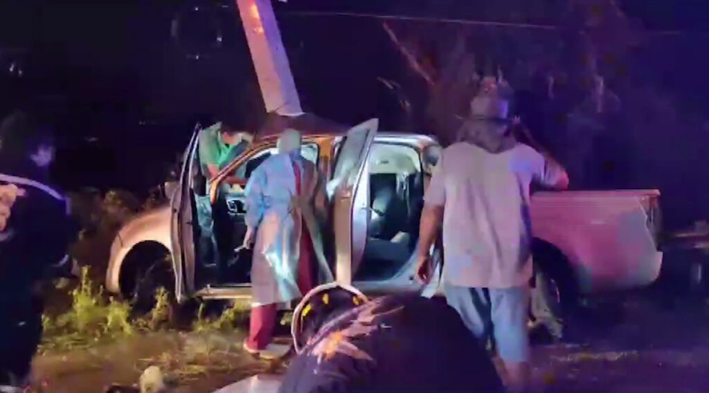 เมื่อวานนี้ (28 เม.ย.) เวลาประมาณ 20.00 น. พ.ต.ท.สมบูรณ์ กลืนกระโทก สารวัตรสอบสวน สภ.พนัสนิคม ได้รับแจ้งจากศูนย์วิทยุหน่วยกู้ภัยสว่างเหตุบ้านทุ่งเหียง ว่ามีอุบัติเหตุรถกระบะเสียหลักชนเสาไฟฟ้าข้างทาง และมีผู้ได้รับบาดเจ็บติดอยู่ภายในรถ ช่วงบริเวณหน้าสถานีอนามัยวัดโบสถ์ หมู่ 10 ต.วัดโบสถ์ อ.พนัสนิคม จ.ชลบุรี ฝั่งขามาจาก อ.พนัสนิคม มุ่งหน้า จ.ฉะเชิงเทรา